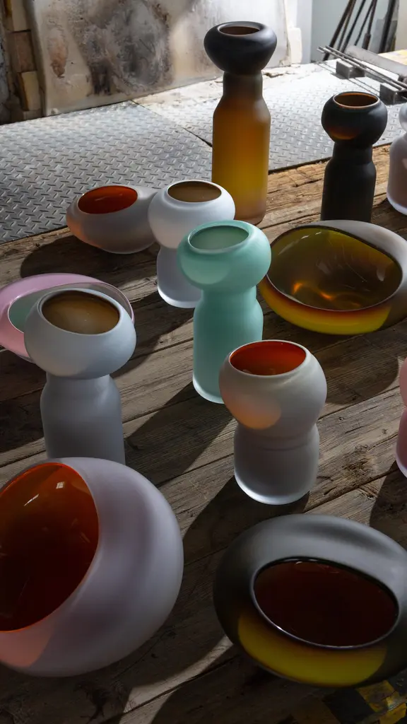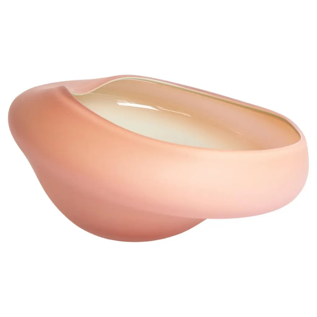 Polypore Small Bowl by David ValnerDimensions: D 22 x W 27 x H 13 cm.Materials: Hand-crafted glass.Weight: 2 kg.Finish: Small size, Pink and mint, and matte surface.In the world of poroid fungi, polypores coexist with the boletus from which it can be easily distinguished with a typically hard surface, the iconic non-mushroom shape, and through growing on wood as decomposers.The series Polypore expands the Fungus collection with functional bowls inspired by the morphology of these curious mushrooms. The bowls come as a result of free shaping with traditional handmade techniques, glass liberated from moulds the form of unique organic shapes reminiscing the eerie kingdom of “tree mushrooms”. David Valner Studio is a collective of artists, designers, and artisans: a family anchored in the values of creativity, craftiness, and utmost respect for glass as an infinitely inspirational material. Designer and CEO David Valner, his partner, photographer, and marketer Tereza Valnerová, his father Aleš Valner, founder and owner of Valner Glass Production glassworks, and a team of expert glass makers, colleagues and supporters. In the very heart of Europe, the Eastern part of the Czech Republic, they have joined forces in searching for the common language between the traditional and the innovative, bringing to life unique glass objects inspired by nature and the ephemeral beauty of everydayness. Valner Studio is a family hub where in-depth knowledge of traditional technology embraces bold and innovative approaches, translating into original collections, each of them a story worth to be told. A story told through glass.David Valner1990, based in Olomouc, Czech RepublicFounder and owner of Valner Studio, David Valner has a background in glass design, sculpture, fine arts, and interactive media. His professional profile extends from interactive objects and videos reflecting the cycle of society’s relation to mass production and the beauty and absurdity of the ordinary, to sculpture, and glass designing, the latest being his predominant focus in recent years. David has grown up in a glassmaker family, amid a swarm of traditional artisans-glass lovers, feeling and watching the physical and metaphorical fire of creation. At the center of his current approach to glass stands respect for the material as an originally free and fluid mass. Endlessly inspired by nature, he creates collections of objects in which each item is an original and defects are embraced as deeply meaningful and inspirational testimonies to artisan glass making as opposed to mass production.