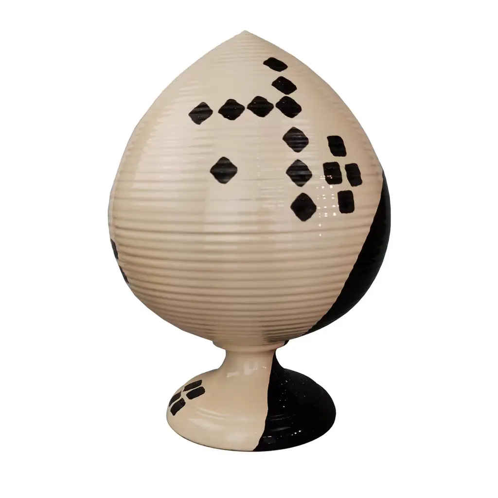 The word “pomo” comes from the Latin word for “fruit”, symbolizing good luck and prosperity. Masterfully crafted of fine ceramic, this decorative sculpture boasts a flower bud shape adorned with two refined leaves on the sides. This splendid sculpture is part of a series of ceramic objects created in partnership with Kiasmo.