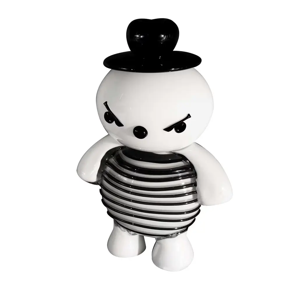 Chef Pork, a blown glass pop comic figurine created by Roberto Beltrami, in Murano glass.Part of a comic and pop collection in Murano glass, the 'PUPI' are 100% mouth-blown and entirely handmade, offering complete customization upon request. Choose from a wide array of options including cats, rabbits, bears, zebras, elephants, giraffes, crabs, snakes, reindeers, monkeys, and more. But that's not all! You can also have them crafted in any character you desire, whether it's a doctor, a cowboy, a superhero, a businessman, a ninja, a sheriff, or even a baseball player. The customer is the real protagonist, able to unleash their imagination and create their own masterpiece by selecting the animal, outfit, or gadget. Everything is possible!
