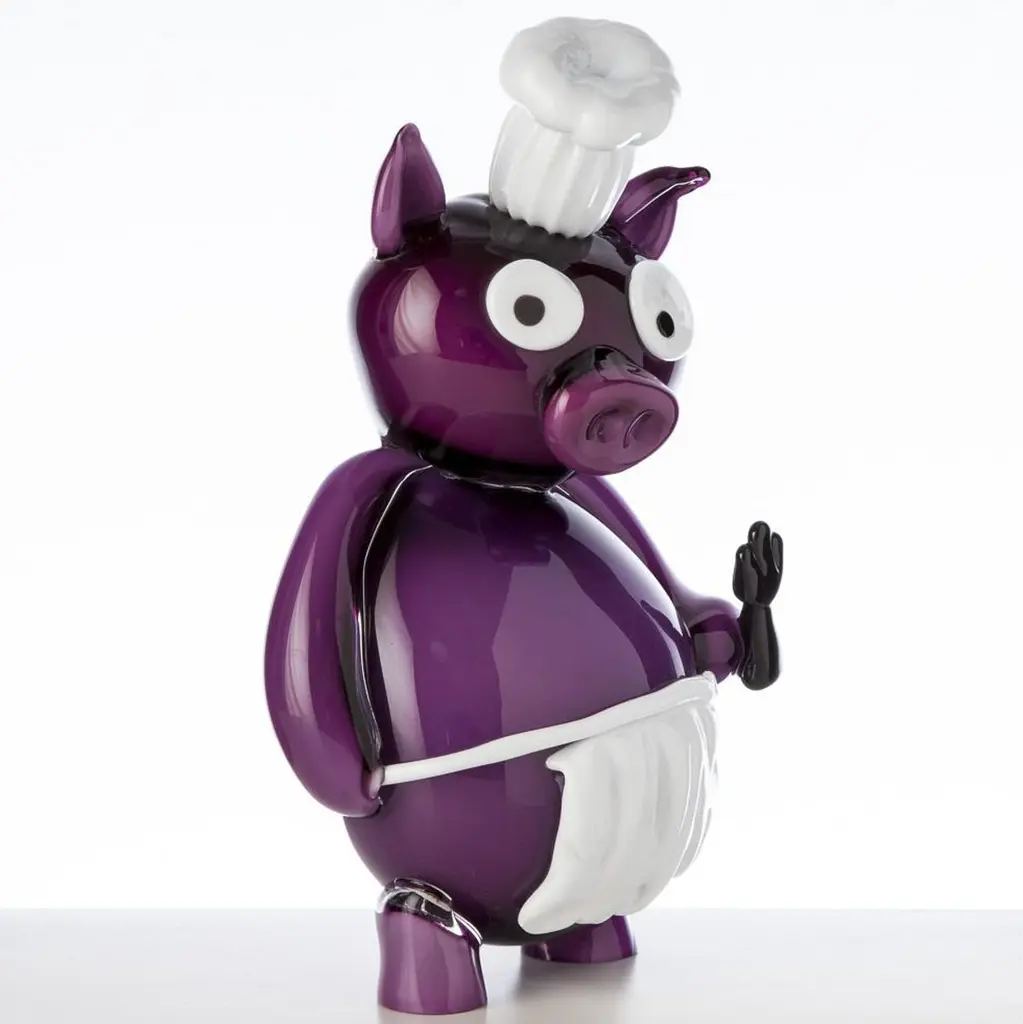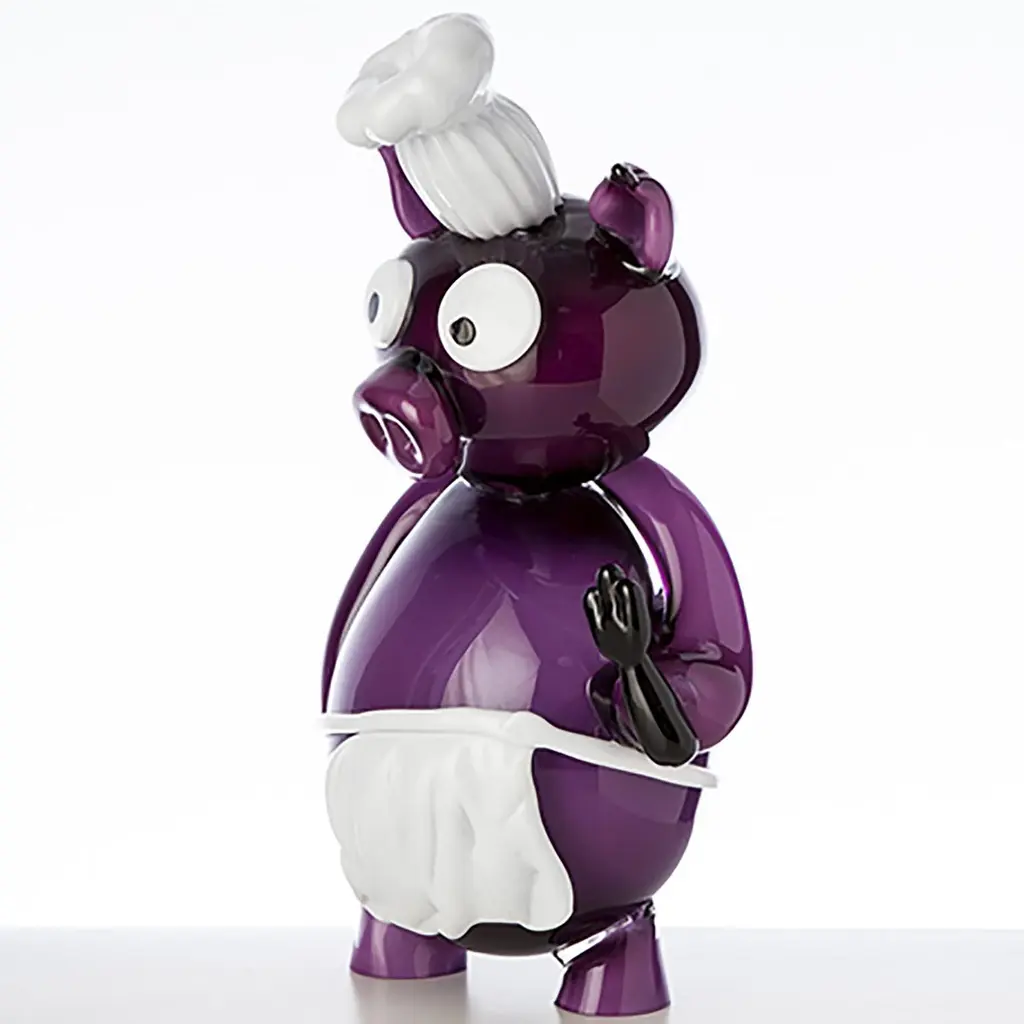 Pop Comic Artistic Murano Glass Sculpture Chef Pork