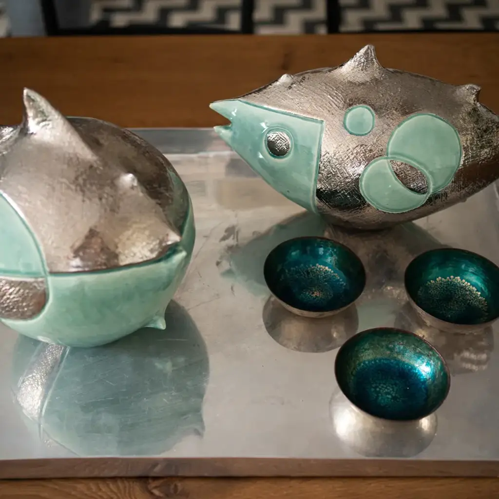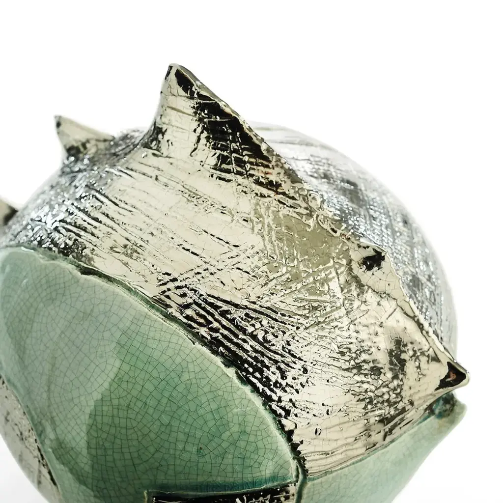 Glazed ceramic globe fish Pop with graffiti details. It is part of the Animalia collection entirely handcrafted in Italy. Archaic shapes that recall the sculptures of the 60s.