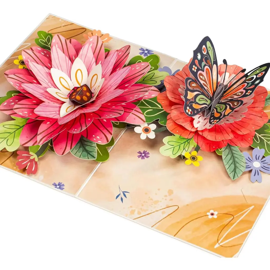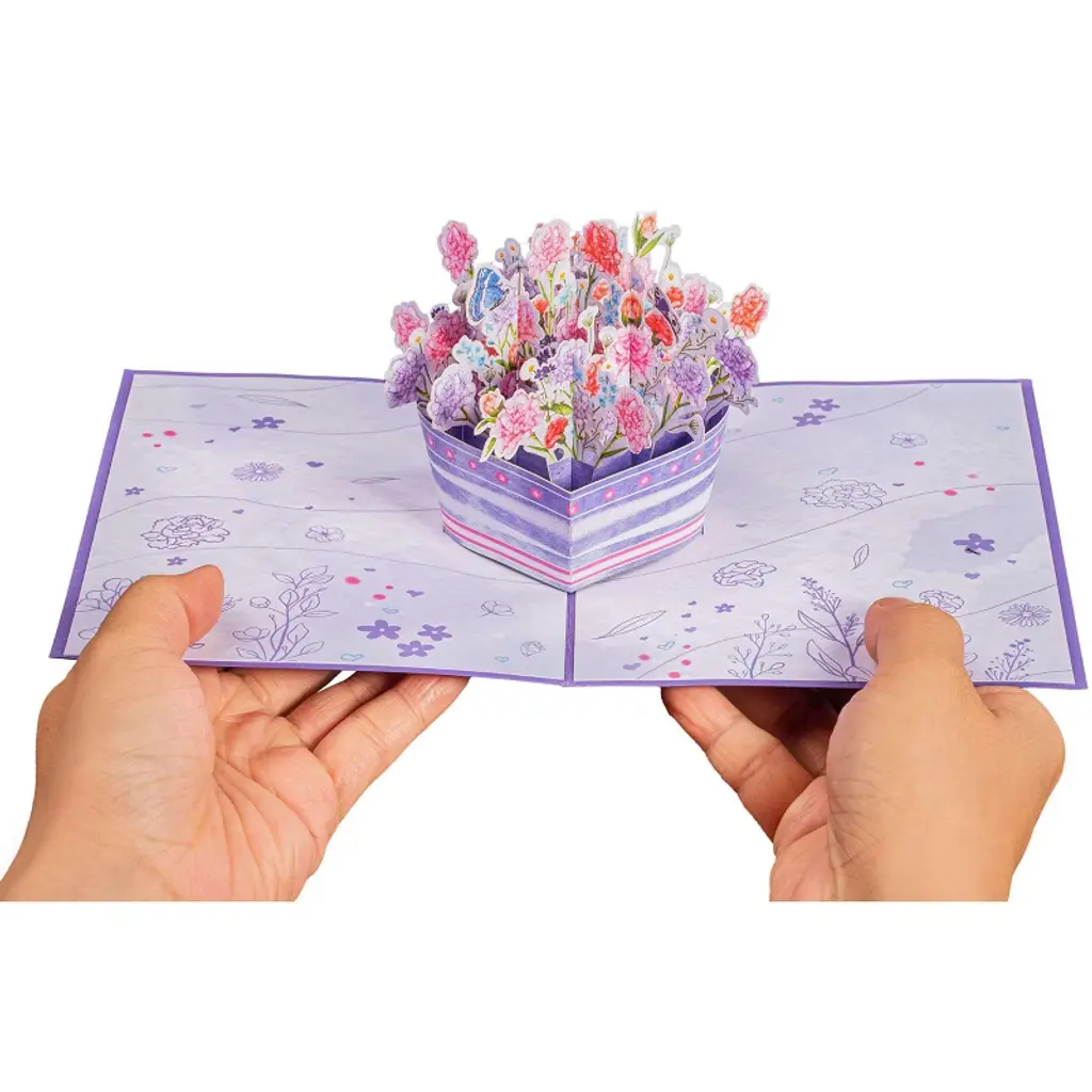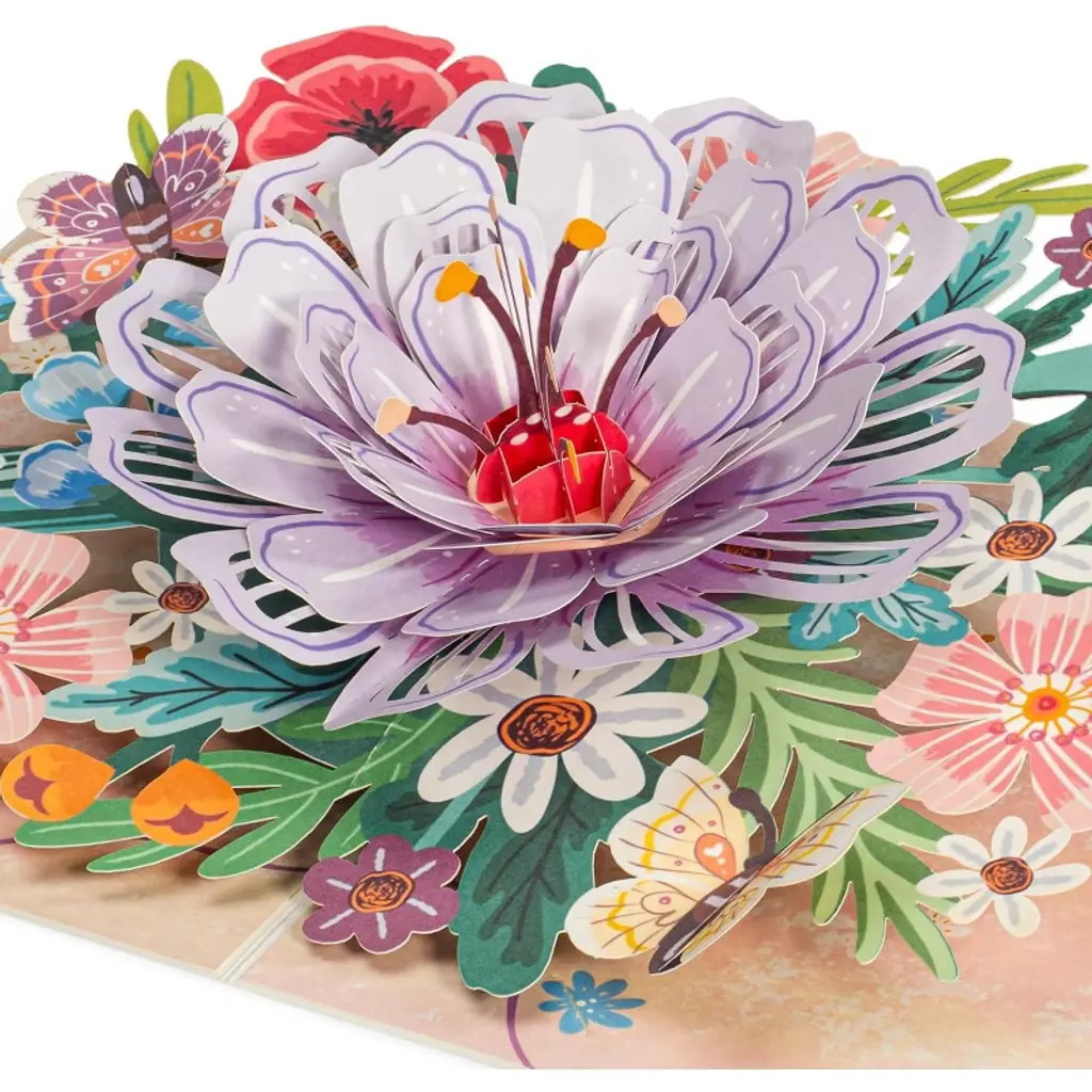 This Paper Love pop-up card features a stunning 3D floral arrangement, handcrafted from premium cardstock with intricate laser-cut details by skilled artisans. Measuring 5" x 7", it lies flat when closed and opens to reveal a beautiful sculpture that creates a heartfelt surprise. Each card includes a removable note tag for your personal message, making it a perfect, timeless gift for any occasion—from birthdays to weddings, thank yous, or just because.