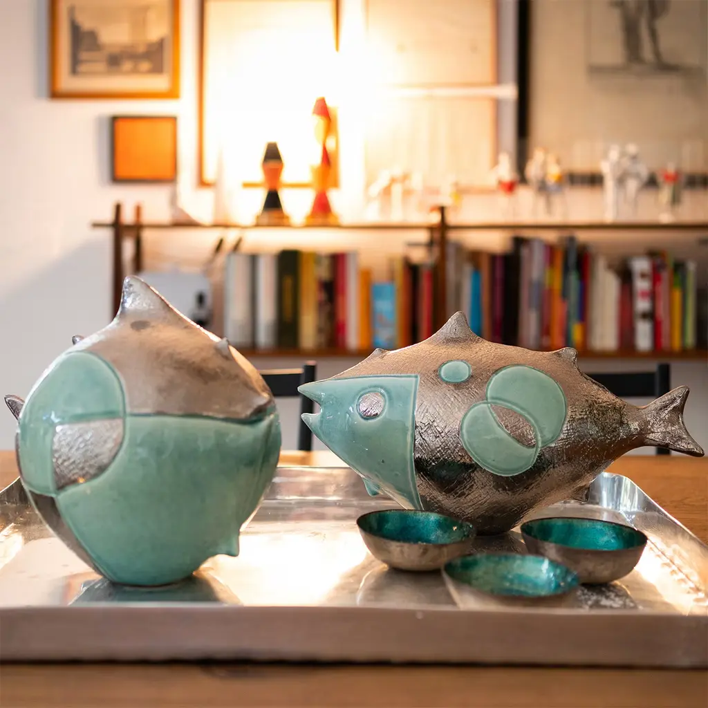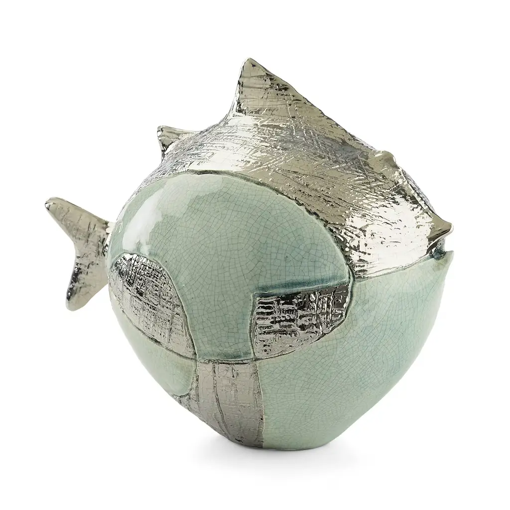 Pop Pesce Palla Green And Silvery Ceramic Sculpture