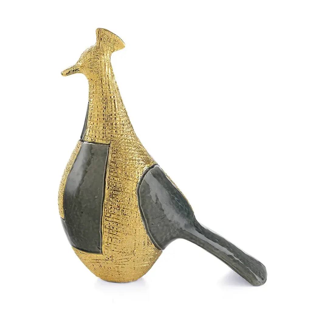 Glazed ceramic tall peacock Pop with graffiti details. It is part of the Animalia collection entirely handcrafted in Italy. Archaic shapes that recall the sculptures of the 60s.
