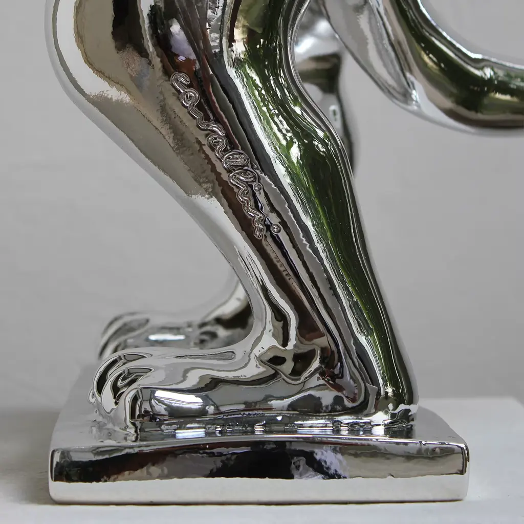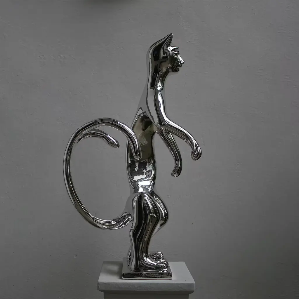 "The Cat," the piece that awarded Sauro Cavallini the prestigious international Fiorino d'Oro award at Palazzo Strozzi in 1965 and acquired by the Galleria d'Arte Moderna in Florence, returns in its indistinguishable form, however with striking pop characteristics. Marble with mirrored finish, L 15 x I 18 x H 48 cm. Limited, signed and numbered pieces.