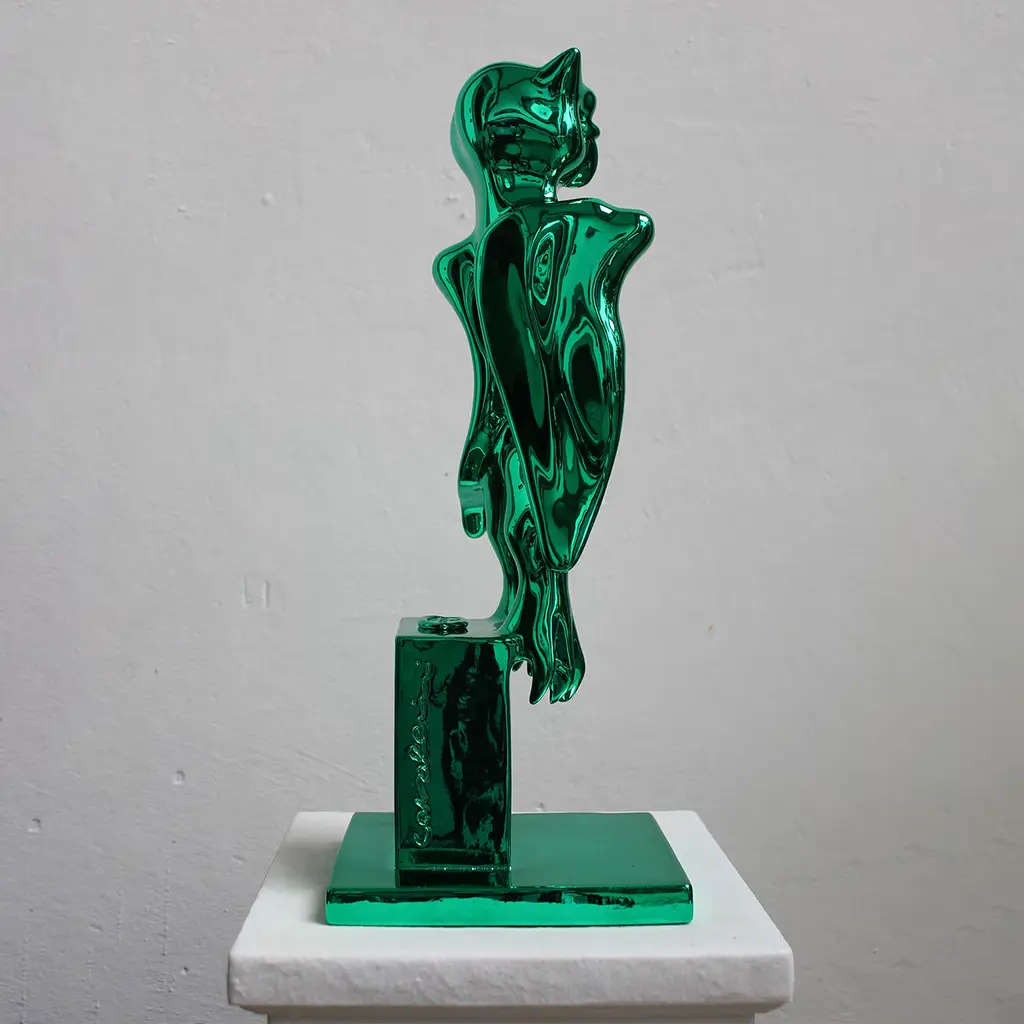 The "Owl" is Sauro Cavallini's work inspired by the namesake raptor that time after time slept before the Master's workshop window, just as though trying to observe what was being created inside. Bronze with mirrored finish, L 15 x I 18 x H 48 cm. Limited, signed and numbered pieces.