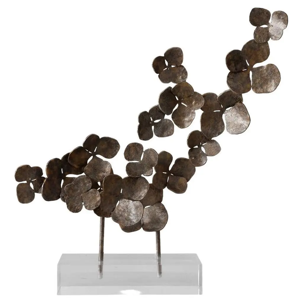 This chorus of poppy pods make a beautiful sculptural statement referencing organic forms and the natural world. A dimensional finish is achieved with an antique bronze color treatment over iron. These pieces would be beautiful on mantels, consoles, sofa tables as well as within dramatic tablescapes for entertaining. From a fashion forward perspective, Global Views offers accessories, furniture, statement lighting, and an assortment of rugs and mirrors to add beauty and joy to your home.