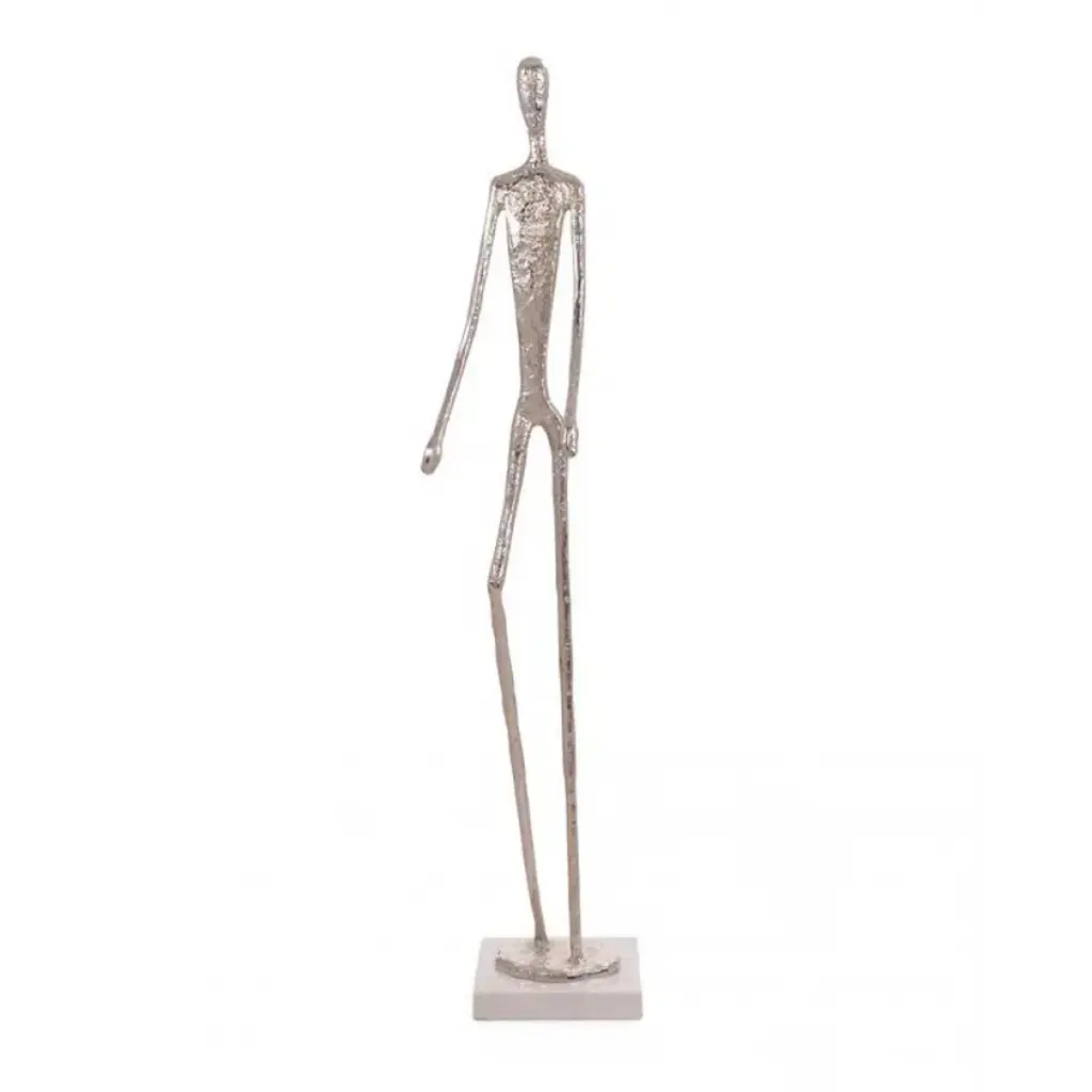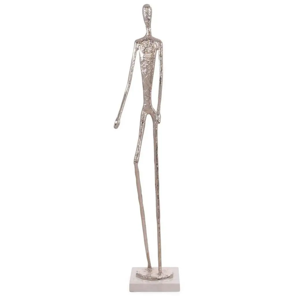 The Posing Silhouette Sculpture is a delightful accent to infuse an interior with fun personality. Crafted from metal in a nickel finish, this sculpture strikes a pose, as if modeling for a photo. The sculpture gently rests atop a stylish base of white marble.