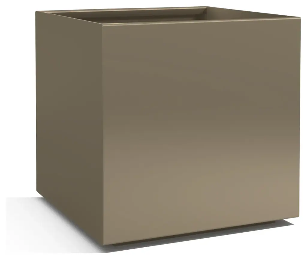 Powder Coated Aluminum Planter, Cube, Taupe, 24"lx24"wx24"h, Without Drainage Holes