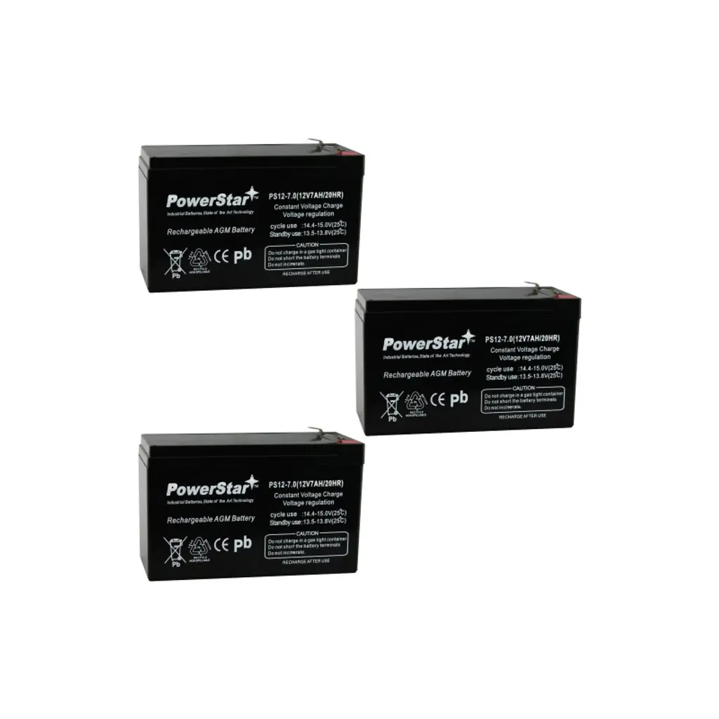 Introducing the PowerStar PS12-7 AGM Sealed Lead Acid Battery- your reliable powerhouse for any use This battery is crafted to deliverrobust performance and steadfast energy to keep you moving with confidence.Seamless Replacement for Part Numbers = Yuasa NP7-12 12-621 BP7-12 BP7-12-T2 BP7.5-12 BP8-12 CA1270 CFM12V6.5 CP685AVR DG12-7 ES7-12 EVX1270 EVX1270F2 EXP-1270 FAS1075 GP1270 GP1270F2 GP1272 GPL1272F2 GT026P4 HE12V7.7 LP12-7.0 ML7-12 NT1270 PS-1270 RBC2 RBC17 RBC51 RBC59 SLA12V7A SP-1270 TL1272 ...Any 12 Volt 7 Ah battery of the same dimensions Applications =Access Control Auto Control systems Cameras & Photographic Equipment CCTV Communications Emergency back-up power Emergency Lighting Fire & Security systems Game Decoys Game Feeders Hobby Equipment Invisible Pet Fences Mopeds Portable Power devices Pumps Radio Control Robotic Scooters Small Toys Solar and Wind Support systems Street Lighting Telemeters Underwater Fish Finders/Cameras Uninterruptable Power Suppy (UPS Systems)...anywhere slim 12V 7Ah batteries are needed See full battery specifications below 2 YEAR WARRANTY30 DAY MONEY BACK GUARANTEEFREE SHIPPING to US Inner 48