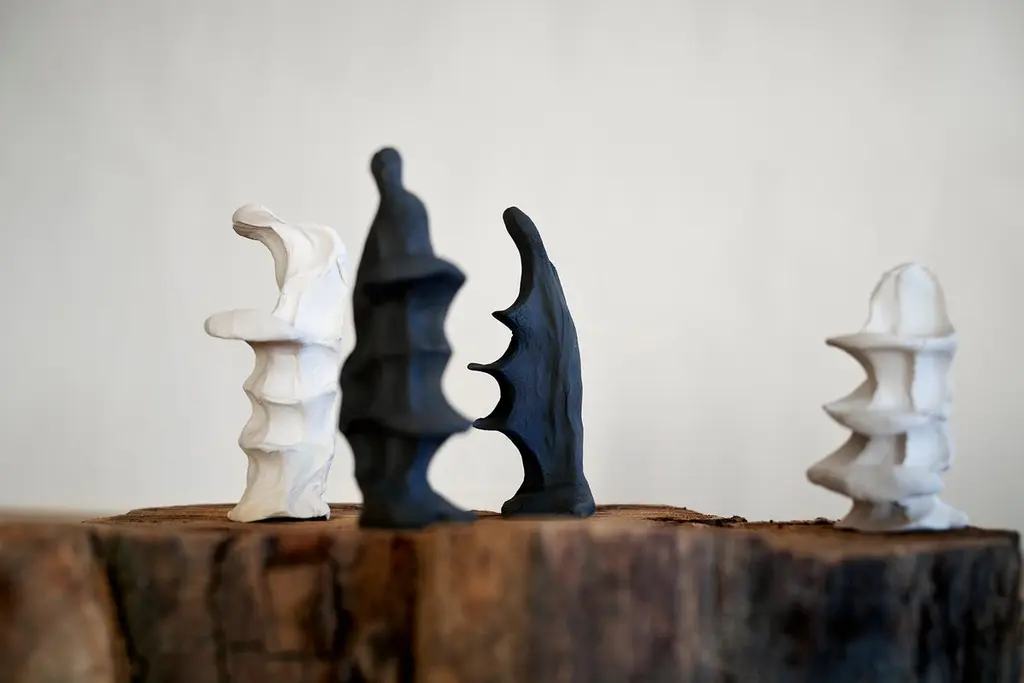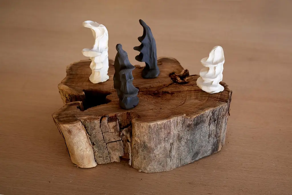Primitive Sculpture by Jean-Baptiste Van den HeedeUnique pieceDimensions: D 3 x H 7 cmMaterials: Clay.Other unique sculptures available.Study of "PRIMITIVE SCULPTURES" of small format in clay. Measurements between 7 cm and 15 cm high.Jean-Baptiste Van den Heede defines himself as a cabinetmaker-designer and an artist of academic training and family tradition. He has achieved unique designs of national and international prestige and has several awards in avant-garde furniture.Born in Argentina in 1966, from an Argentine mother and a Belgian father. At 5 years of age he and his family moved to Belgium.To train as a wood professional, he first studied 4 years of carpentry. Then he continued training in cabinetmaking and carving for 5 more years. Always in search of contributing something more to his trade, he studied furniture and antique design, culminating this with the study of Sculpture at the Royal Academies of Fine Arts in Liège (Belgium) and graduating with honors.Work the stone, the wood and experience the forge. From the beginning it is directed towards a search for signs, abstract writings and unrealistic figures in analogy with other “Primitive” cultures. He taught drawing and sculpture in Brussels at the private school “la main et l´ esprit” As well as summer courses in Liege (Belgium) “les ateliers d´art contemporain”.In 1995 he went to Barcelona where he taught and investigated the reliefs of different supports such as trees, floors, and especially sewer covers.He searched again analogies between current art and Prehistoric, African art, etc.Participated in several exhibitions both at the artistic level and avant-garde design.In 2002, he moved down to Albacete and then to a town in the province where he still works.It is defined as “a search engine without haste or guidelines.” He says: “I only work when I feel a strong and positive inspiration invade me, an energy that I capture from matter, from the air and that I return doing the work until I feel a connection with it.”Private workshop of contemporary art in Letur (Albacete) until 2009.He currently works in his workshop-studio in the Sierra de Madrid (Guadalix de la Sierra) following his career as a cabinetmaker-designer and artist while teaching his trade to students interested in wood.