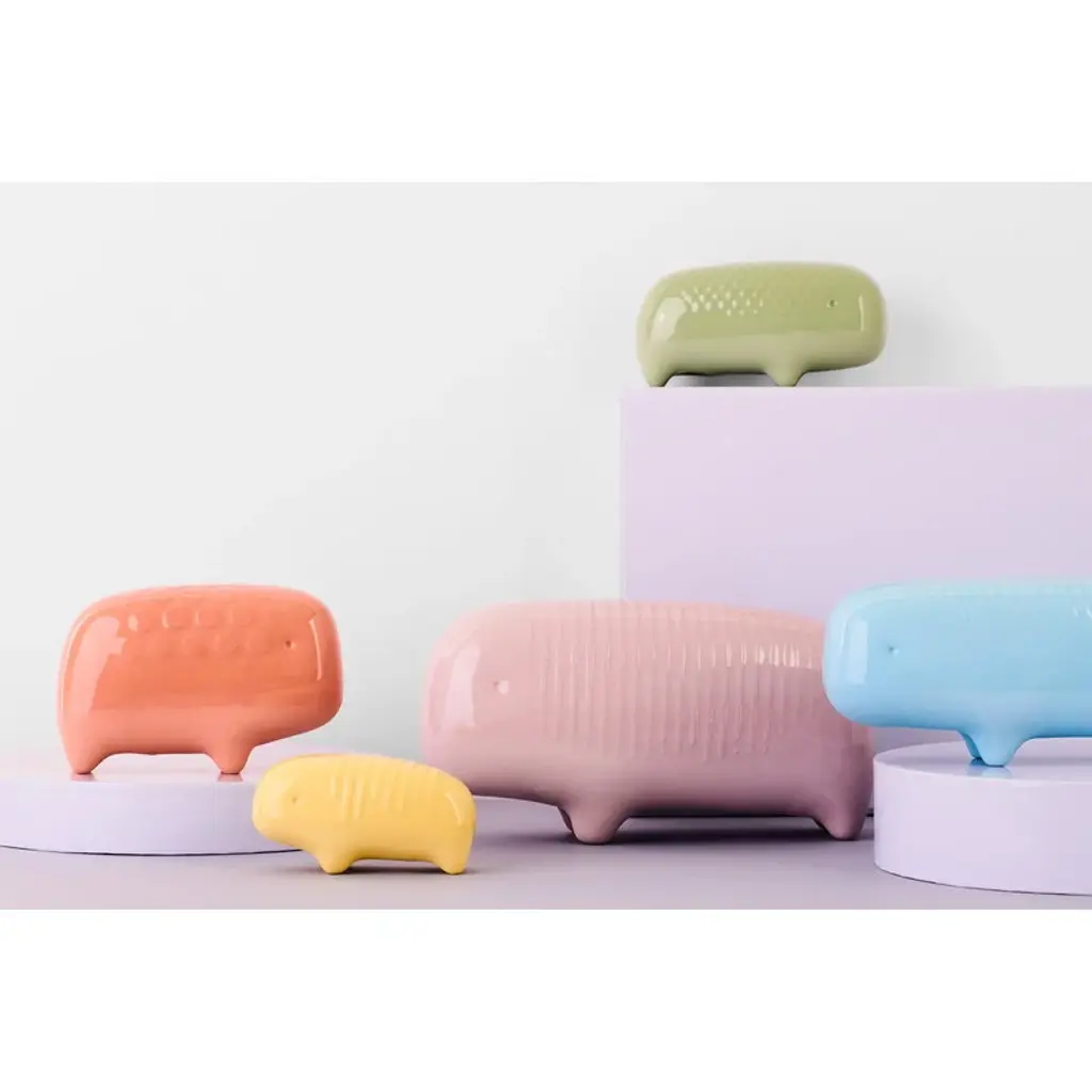 Arni Aromaa’s Primordial Animal is a charming little sculpture made of cast and glazed porcelain. The ceramic figure is dipped in the glaze upside down so that it only covers the top, allowing the material’s lovely natural color and texture to show at the bottom. The Primordial Animals are available in various sizes in different shades. In each color family, the size S sculpture features a dot pattern on its glaze back that may vary slightly between individual sculptures. The exact positioning of the glaze itself or the creature's eyes may also vary – each Primordial Animal is unique. Aromaa has named the creature as a Primordial Animal, but its ambiguous form and patterned glazing also evoke images of whales, wombats or even armadillos. What do you see in the Primordial Animal?