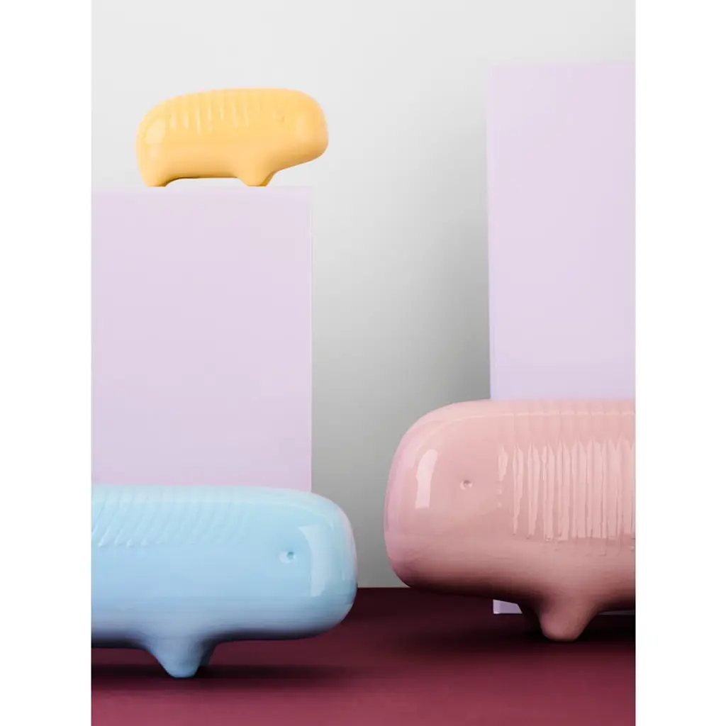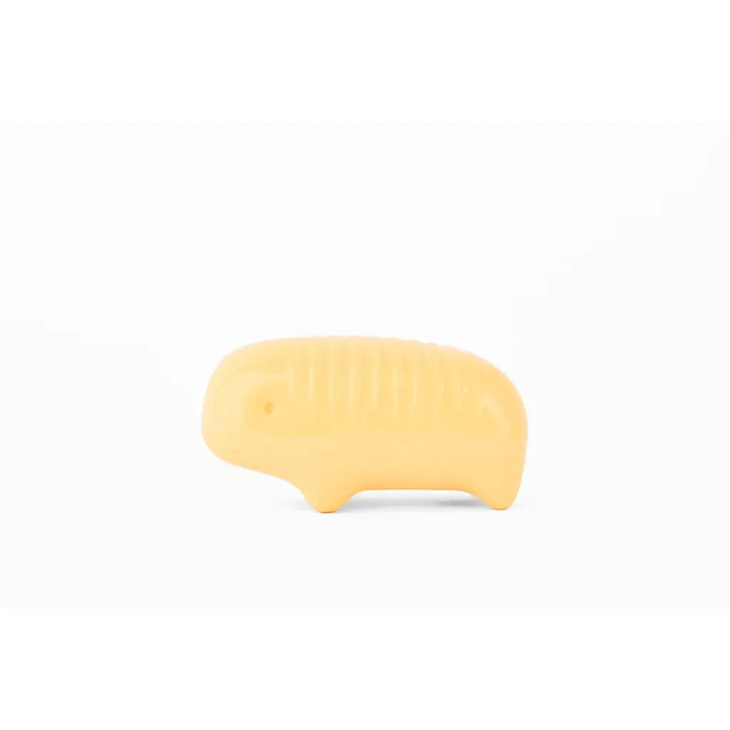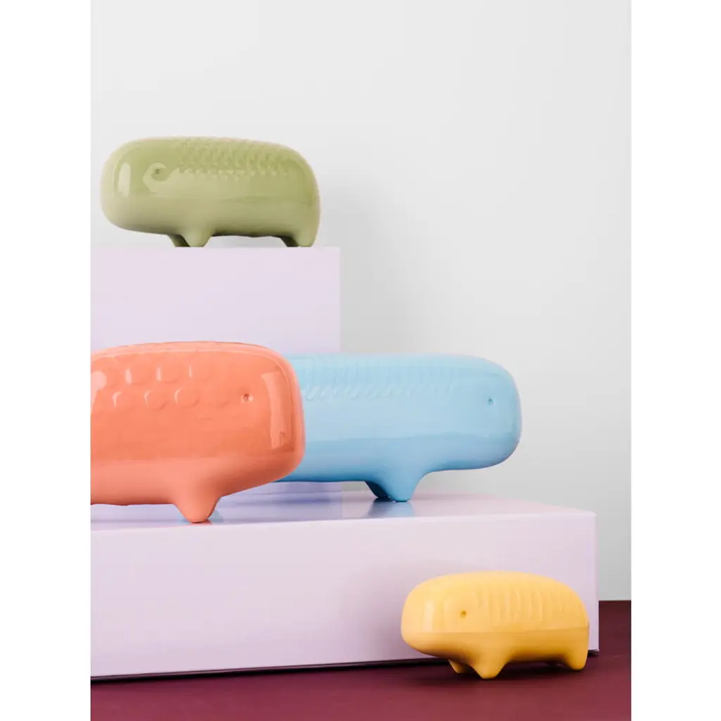 Arni Aromaa’s Primordial Animal is a charming little sculpture made of cast and glazed porcelain. The ceramic figure is dipped in the glaze upside down so that it only covers the top, allowing the material’s lovely natural color and texture to show at the bottom. The Primordial Animals are available in various sizes in different shades. In each color family, the size XS sculpture features a stripe pattern on its glaze back that may vary slightly between individual sculptures. The exact positioning of the glaze itself or the creature's eyes may also vary – each Primordial Animal is unique. Aromaa has named the creature as a Primordial Animal, but its ambiguous form and patterned glazing also evoke images of whales, wombats or even armadillos. What do you see in the Primordial Animal?