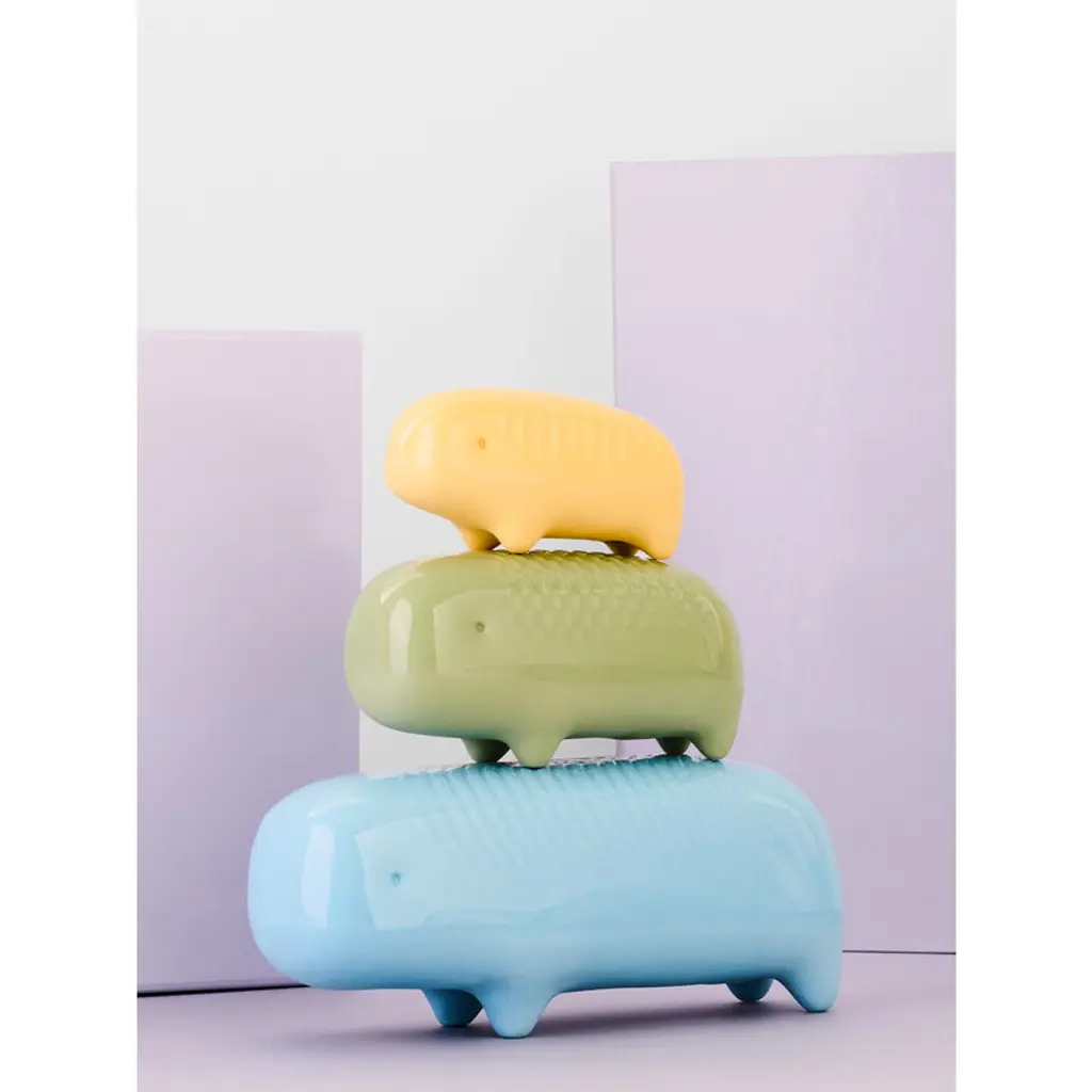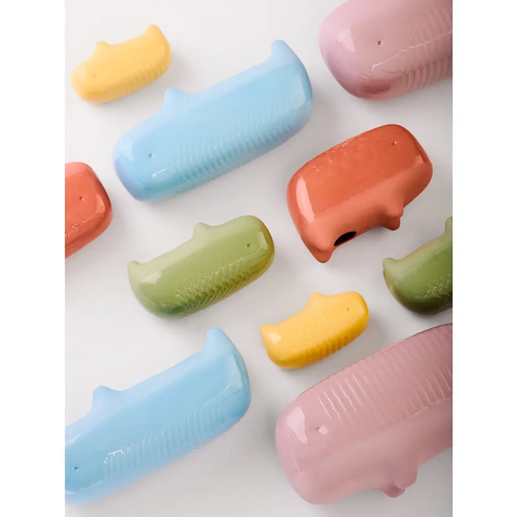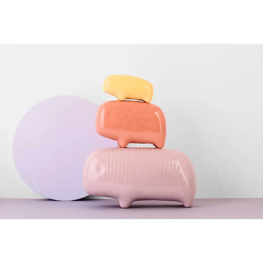 Arni Aromaa’s Primordial Animal is a charming little sculpture made of cast and glazed porcelain. The ceramic figure is dipped in the glaze upside down so that it only covers the top, allowing the material’s lovely natural color and texture to show at the bottom. The Primordial Animals are available in various sizes in different shades. In each color family, the size XS sculpture features a stripe pattern on its glaze back that may vary slightly between individual sculptures. The exact positioning of the glaze itself or the creature's eyes may also vary – each Primordial Animal is unique. Aromaa has named the creature as a Primordial Animal, but its ambiguous form and patterned glazing also evoke images of whales, wombats or even armadillos. What do you see in the Primordial Animal?