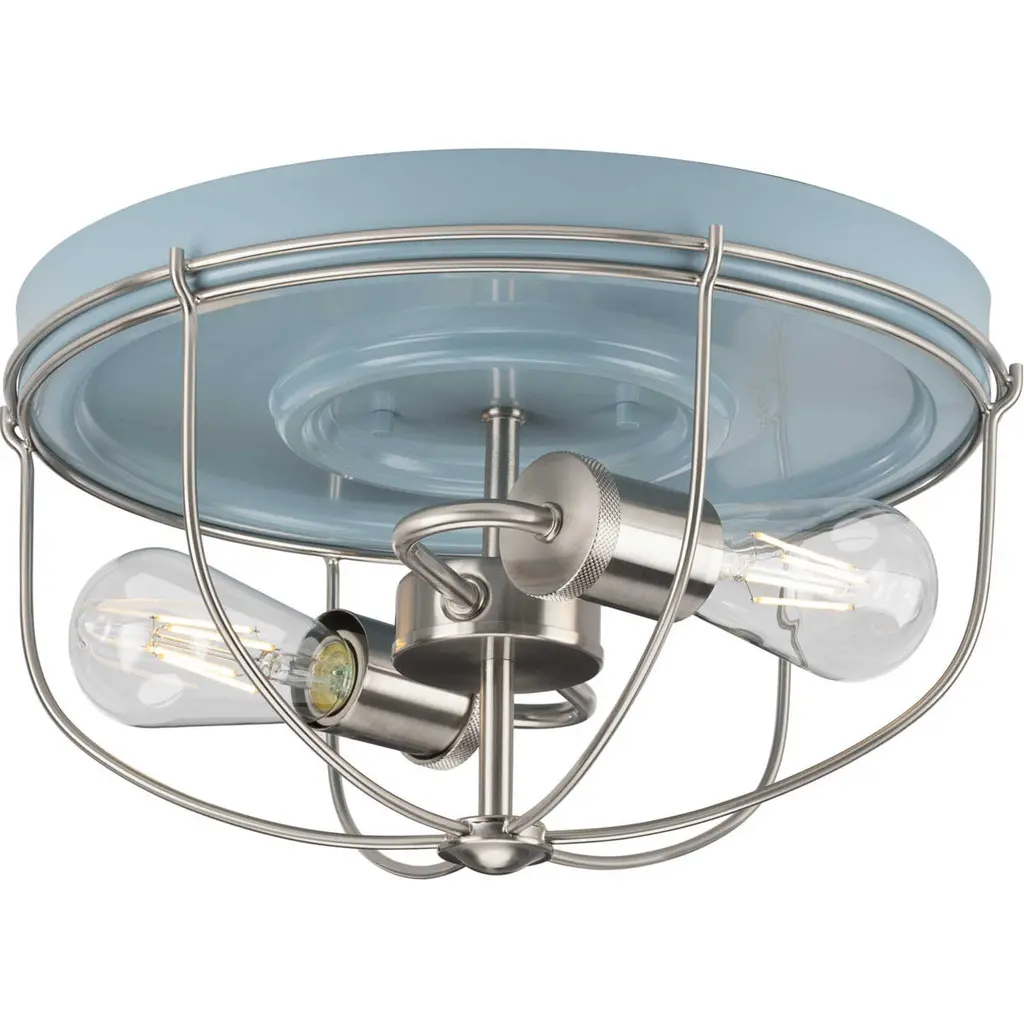 Progress Lighting Medal 2-light Flush Mount Ceiling Light, Coastal Blue, Open-cage Design