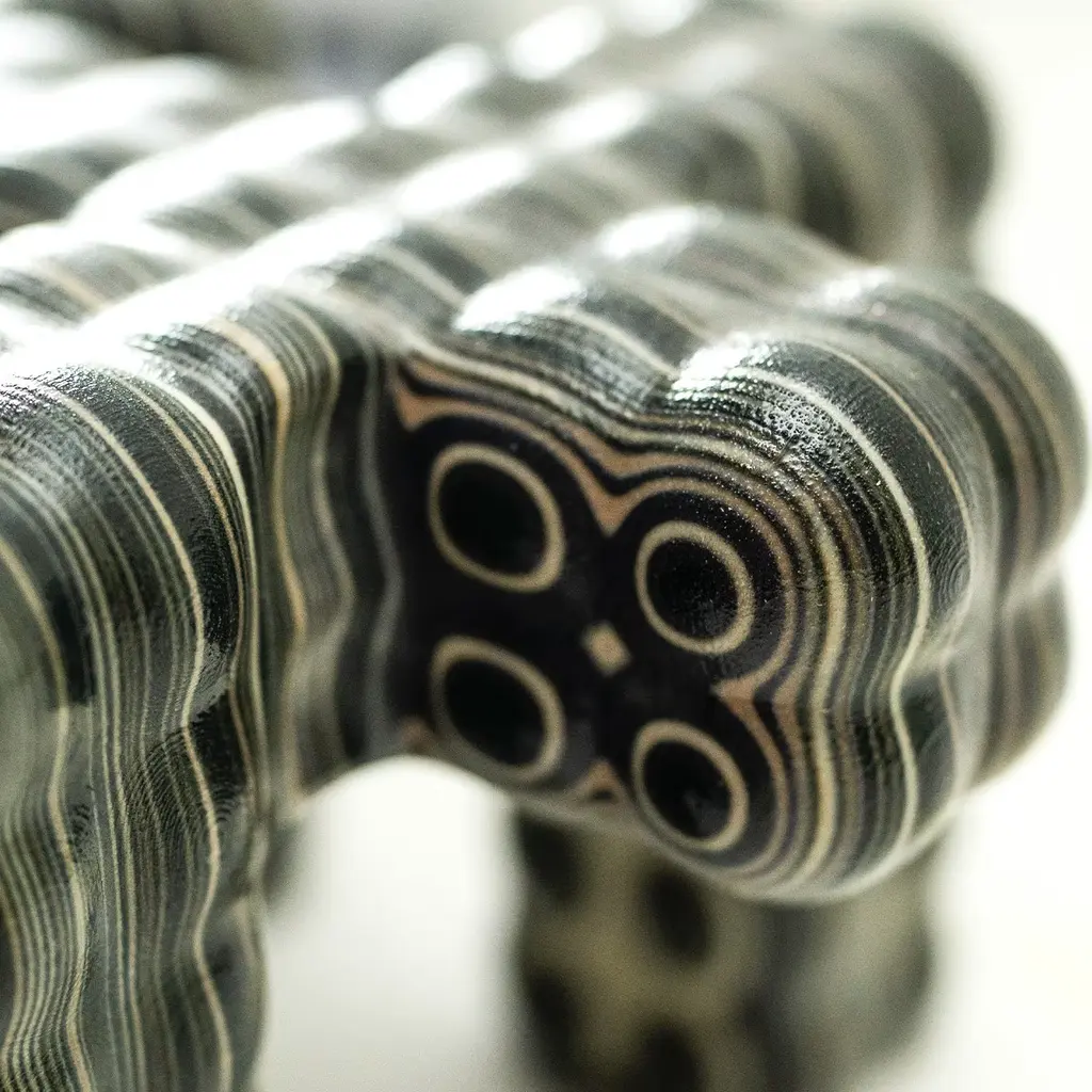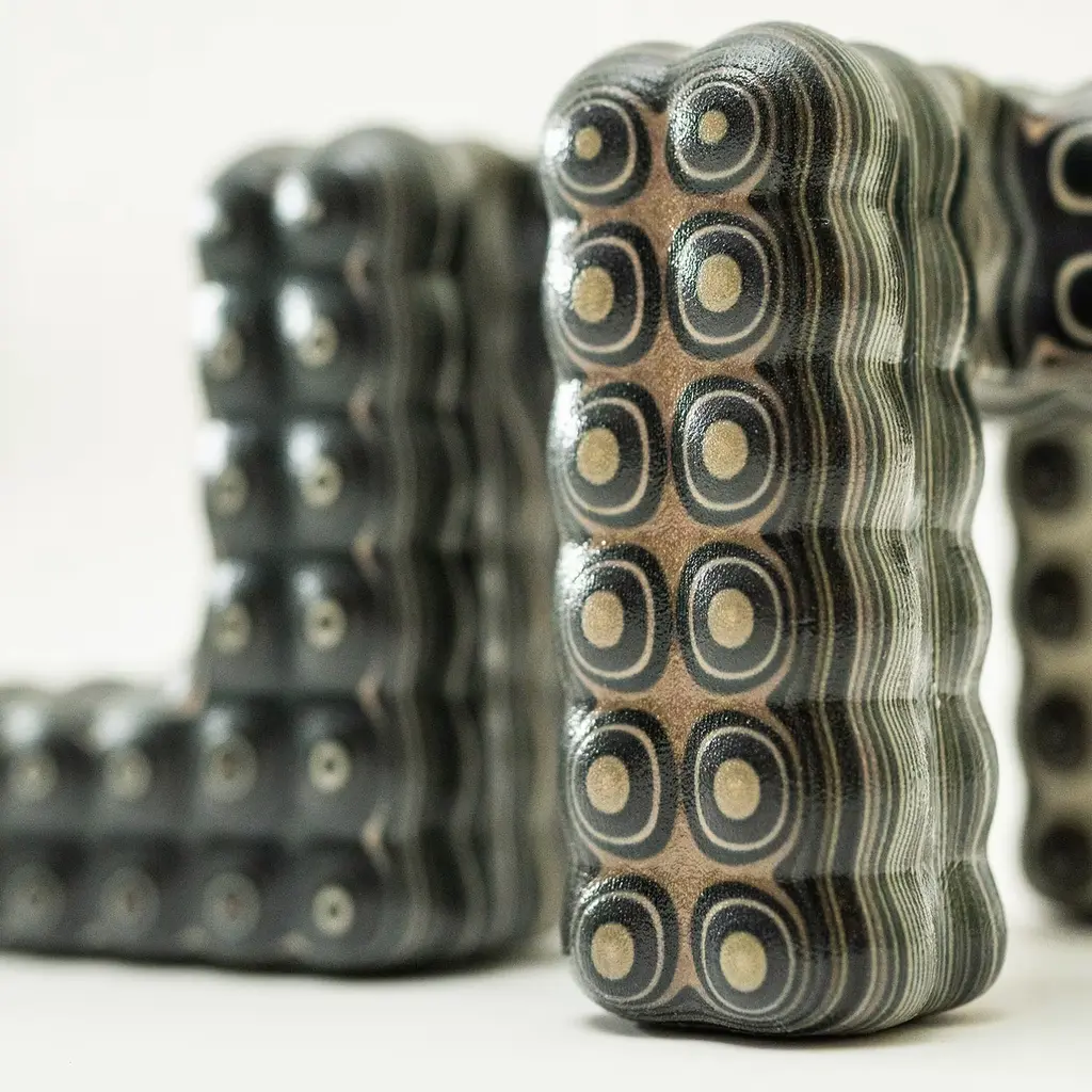Prono Strata is a sculpture in pigmented plaster. "Strata" is a series of works that is part of the Prono cycle, a central archetype in the artist's work. This artwork expressed the uniqueness of the individual. Each subject, with its unique chromatism, will be made in a maximum of two copies, one of which will be dedicated to exhibitions and the other available to the market.