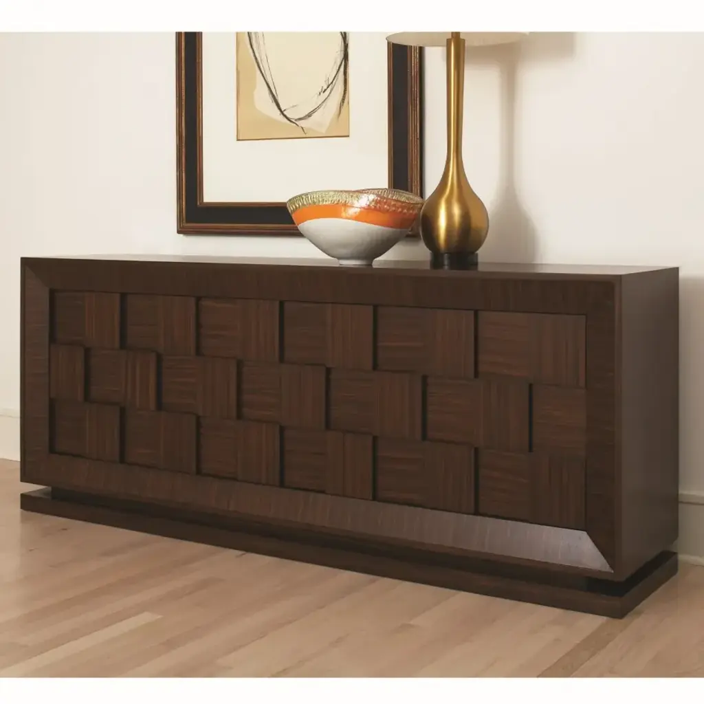 The breathtaking Quad Block Chest makes an architectural statement with its handsome geometric pattern of zebra wood veneer. Ample in size, it allows you plenty of space to display your stylish glass sculptures or vintage collectables. It has an adjustable shelf behind each door and rear grommets for easy access for component wiring making it not only beautiful but functional. From a fashion forward perspective, Global Views offers accessories, furniture, statement lighting, and an assortment of rugs and mirrors to add beauty and joy to your home.