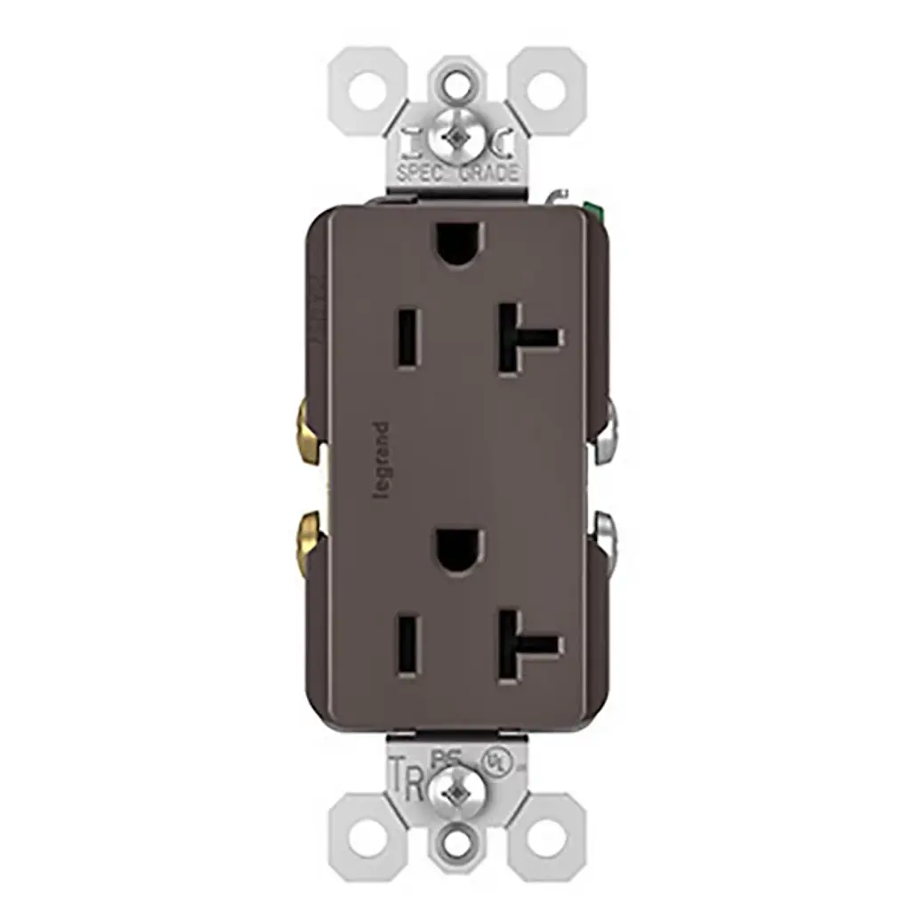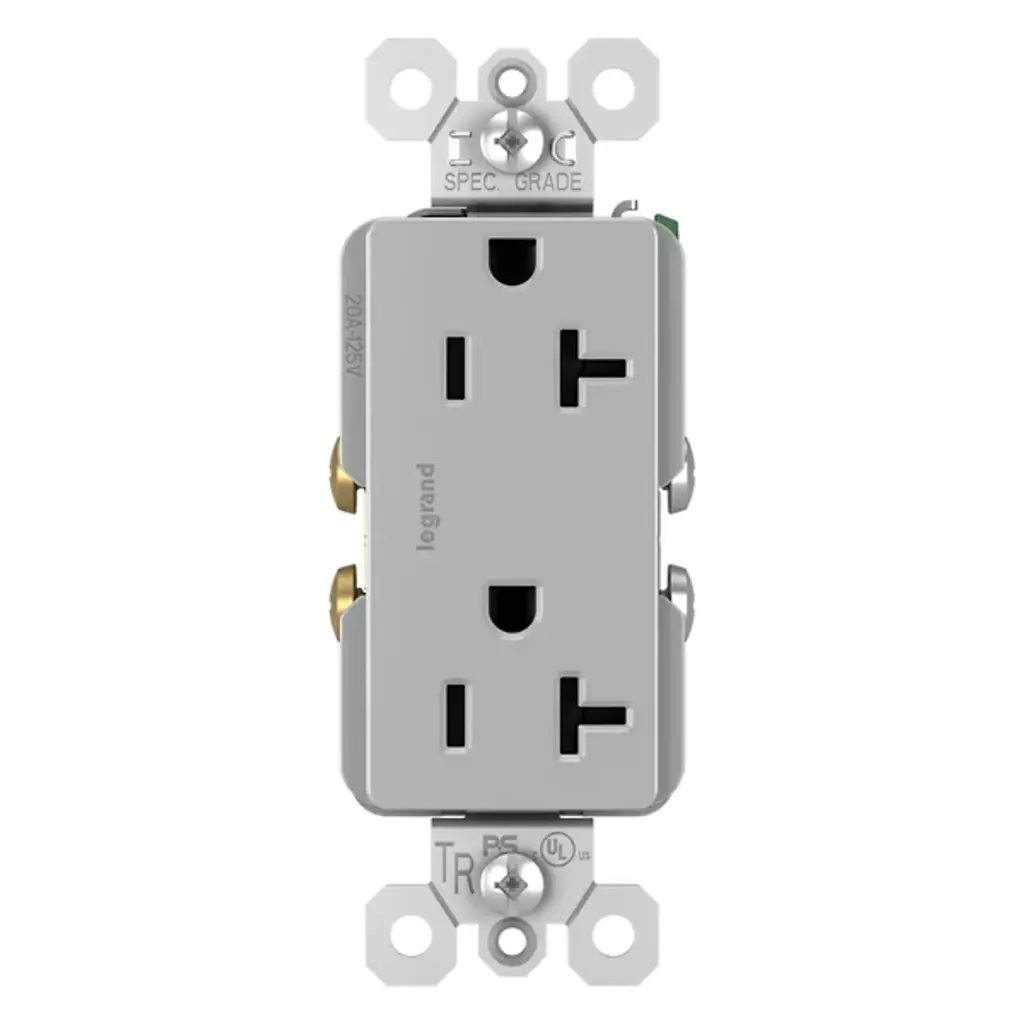 The Radiant Spec Grade 20A Tamper Resistant Outlet from Legrand Adorne is crafted with a robust and enduring high-impact resistant thermoplastic construction. Your outlet is built to for longevity. Its patented shutter system prevents the insertion of objects. Designed for use with 20 Amp 120V AC 60 Hz lines, this outlet offers the reliability and performance you need. Upgrade your space with this dependable, tamper-resistant outlet, and conveniently power up when necessary.