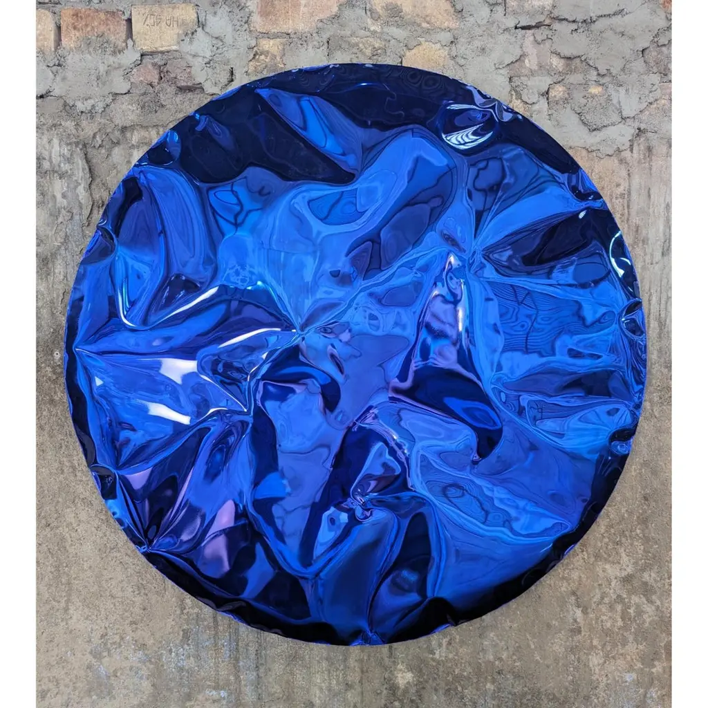 Ramé Copper Wall Sculpture by NITUSH AROOSHDimensions: Ø 100 cm. Materials: Stainless steel.Available in different finishes. All our lamps can be wired according to each country. If sold to the USA it will be wired for the USA for instance. Please contact us.Aroosh and Nitush Mahipal, the creative minds behind Nitush-Aroosh, were born and raised in New Delhi, India, amidst a vibrant cultural and artistic milieu. Their parents instilled in them a love of beauty and creativity from a young age, and they were fortunate to travel extensively to different parts of the world, where they were exposed to diverse forms of art, design, and architecture. From childhood, Aroosh and Nitush were captivated by the stainless steel available at their family’s factory, spending countless hours creating their toys and honing their skills. This fascination laid the foundation for their future design and art endeavors, eventually leading to the birth of Nitush-Aroosh.The Mahipal brothers use innovative techniques to create a crumbled effect on stainless steel, resulting in sculptural pieces that appear to be made of a different material altogether. Their sculptural objects, including furniture, lights, sculptures, and wall installations, are carefully crafted to invite the viewers to embark on self-discovery and introspection.The Mahipal brother’s maiden international art exhibition at the Marbella Art Fair, Spain, in November 2021 was met with great enthusiasm and acclaim. Following this, they showcased their creations in two more exhibitions in Spain in 2022, where they left an indelible mark with their extraordinary pieces.White Domus took their artistic expression to new heights in 2023 when they held their first solo exhibition at a leading art gallery in Madrid, Spain.