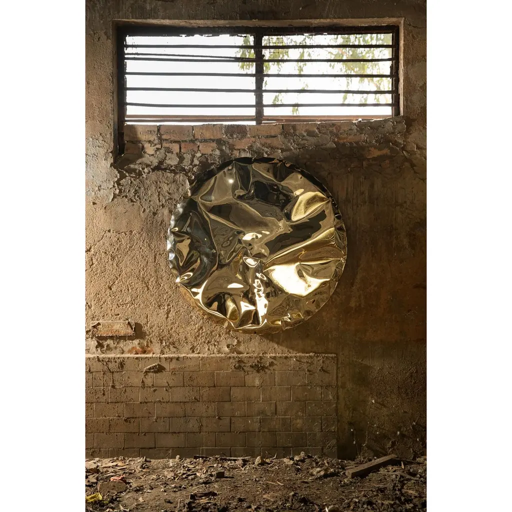 Ramé Sage Green Wall Sculpture by NITUSH AROOSHDimensions: Ø 100 cm. Materials: Stainless steel.Available in different finishes. All our lamps can be wired according to each country. If sold to the USA it will be wired for the USA for instance. Please contact us.Aroosh and Nitush Mahipal, the creative minds behind Nitush-Aroosh, were born and raised in New Delhi, India, amidst a vibrant cultural and artistic milieu. Their parents instilled in them a love of beauty and creativity from a young age, and they were fortunate to travel extensively to different parts of the world, where they were exposed to diverse forms of art, design, and architecture. From childhood, Aroosh and Nitush were captivated by the stainless steel available at their family’s factory, spending countless hours creating their toys and honing their skills. This fascination laid the foundation for their future design and art endeavors, eventually leading to the birth of Nitush-Aroosh.The Mahipal brothers use innovative techniques to create a crumbled effect on stainless steel, resulting in sculptural pieces that appear to be made of a different material altogether. Their sculptural objects, including furniture, lights, sculptures, and wall installations, are carefully crafted to invite the viewers to embark on self-discovery and introspection.The Mahipal brother’s maiden international art exhibition at the Marbella Art Fair, Spain, in November 2021 was met with great enthusiasm and acclaim. Following this, they showcased their creations in two more exhibitions in Spain in 2022, where they left an indelible mark with their extraordinary pieces.White Domus took their artistic expression to new heights in 2023 when they held their first solo exhibition at a leading art gallery in Madrid, Spain.