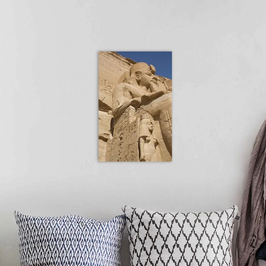Ramses II statue with Queen Nefertari statue at lower left, Ramses II Temple, UNESCO World Heritage Site, Abu Simbel, Nubia, Egypt, North Africa, Africa