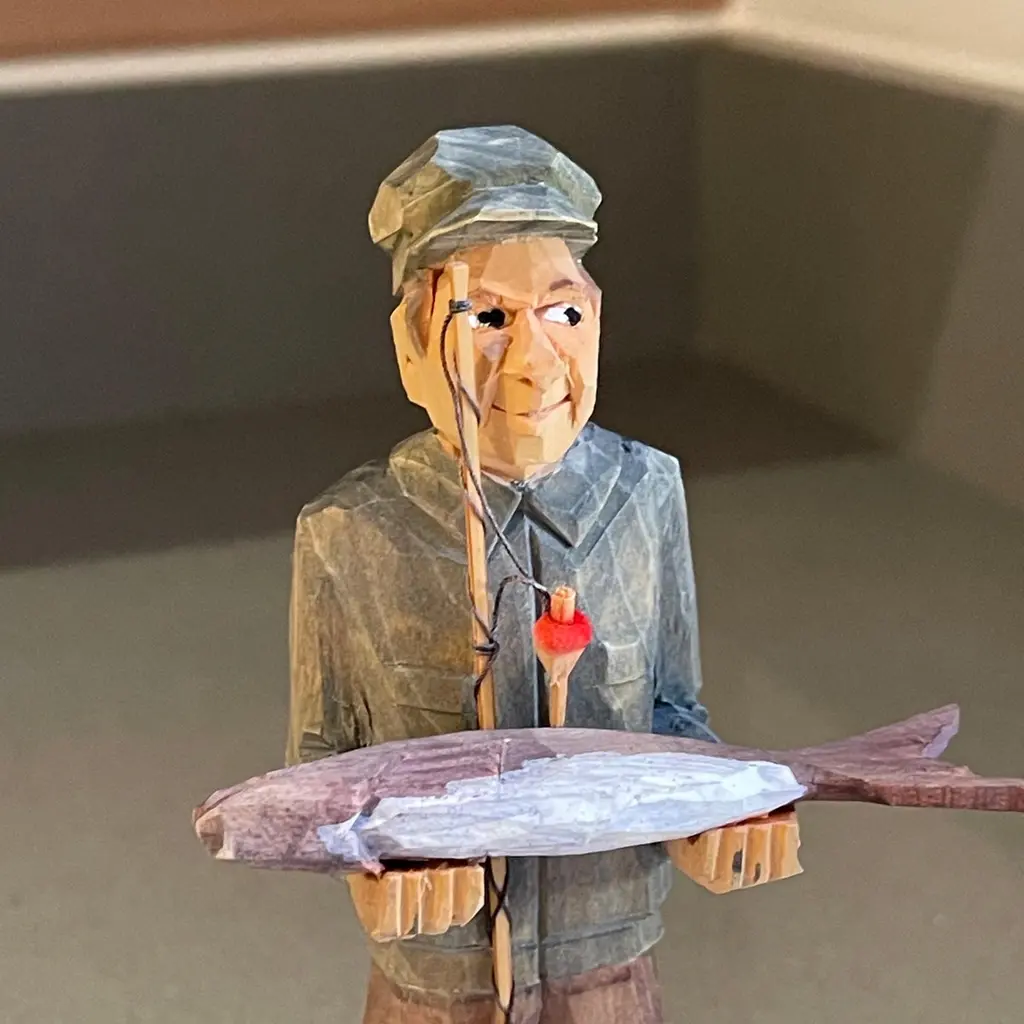 Rare Wooden Carving Human Sculptures A Fisher Man Antique Decorative Figurine