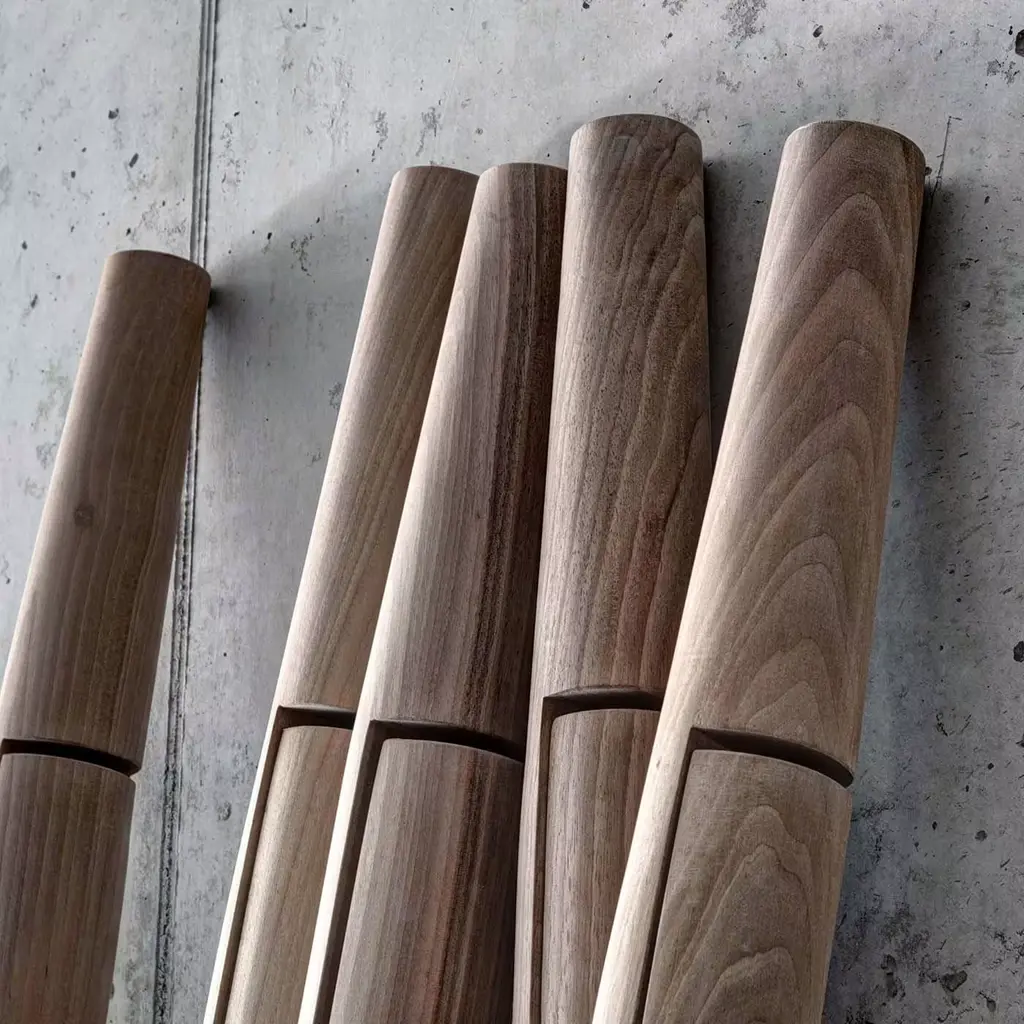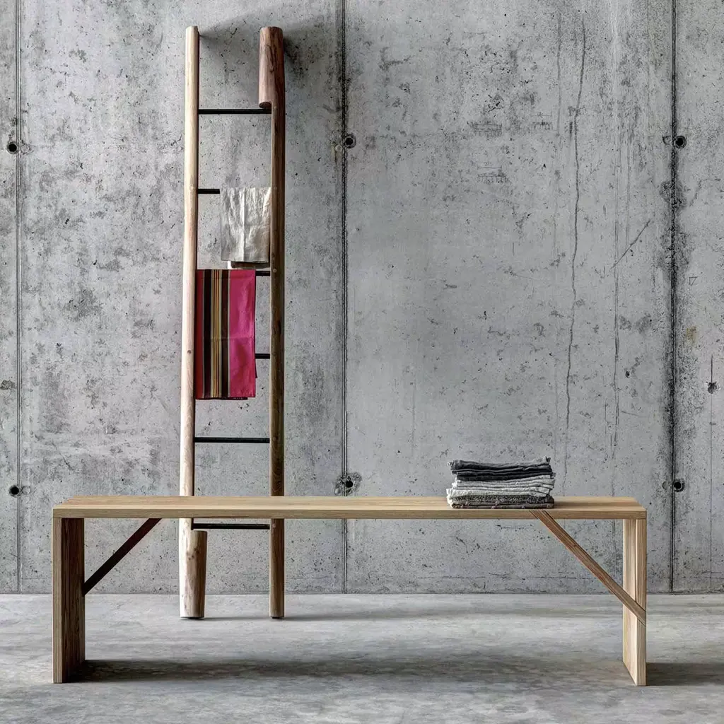 A sculpture by Studio Guscetti, this design is a modern revisitation of an iconic rustic item, the orchard ladder. This piece boasts tapered pillars crafted of solid walnut that enclose a structure of vertical steps in natural-finished steel. Either used as a towel rack, clothes hanger, or striking decorative element to add texture to any wall, this will be a stunning addition to a modern home. When opened the piece measures 30 x 176.5 cm, when folded 5.1 x 201.5 cm