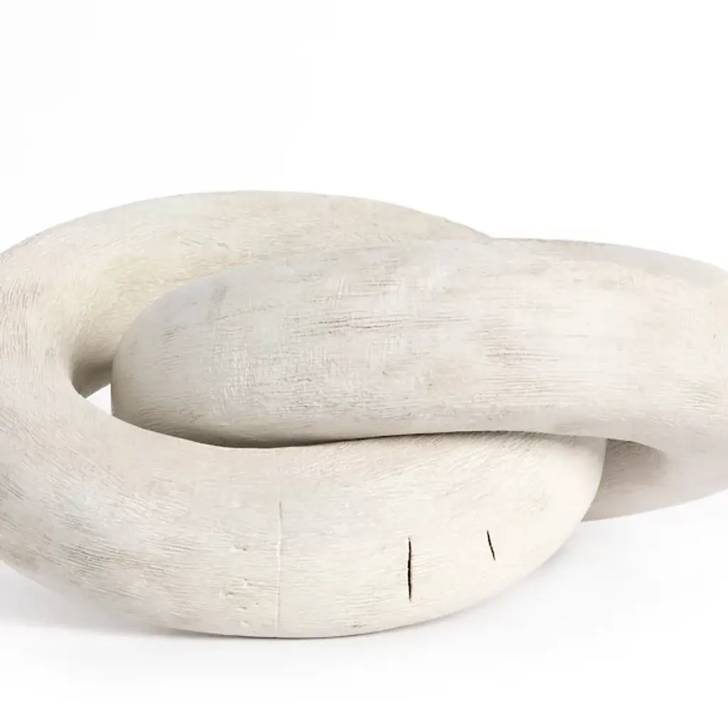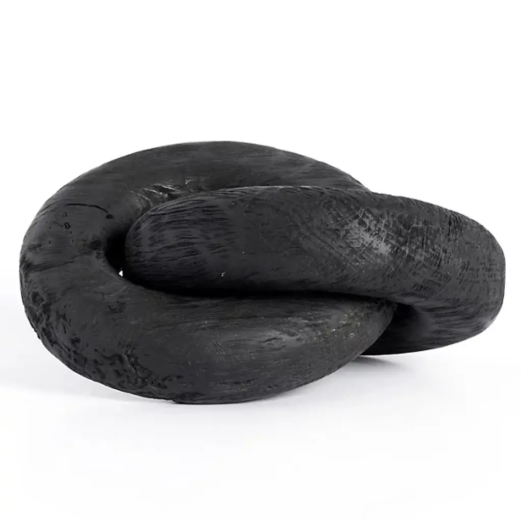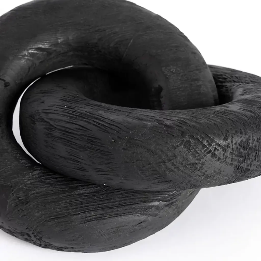 The Reclaimed Wood Knot from Four Hands reduces sculpture to its essential form through interconnected circular elements. Two hand-shaped rings link together in an eternal embrace, creating a negative space that becomes as important as the wood itself. The reclaimed timber reveals its previous life through distinctive grain patterns, splits, and character marks. This minimalist accent creates visual intrigue on mantels, shelves, or entry tables through its deceptively simple composition. Unlike mass-produced decor, each knot carries unique wood characteristics impossible to duplicate, offering both environmental consciousness and authentic materiality in a contemporary sculptural form.