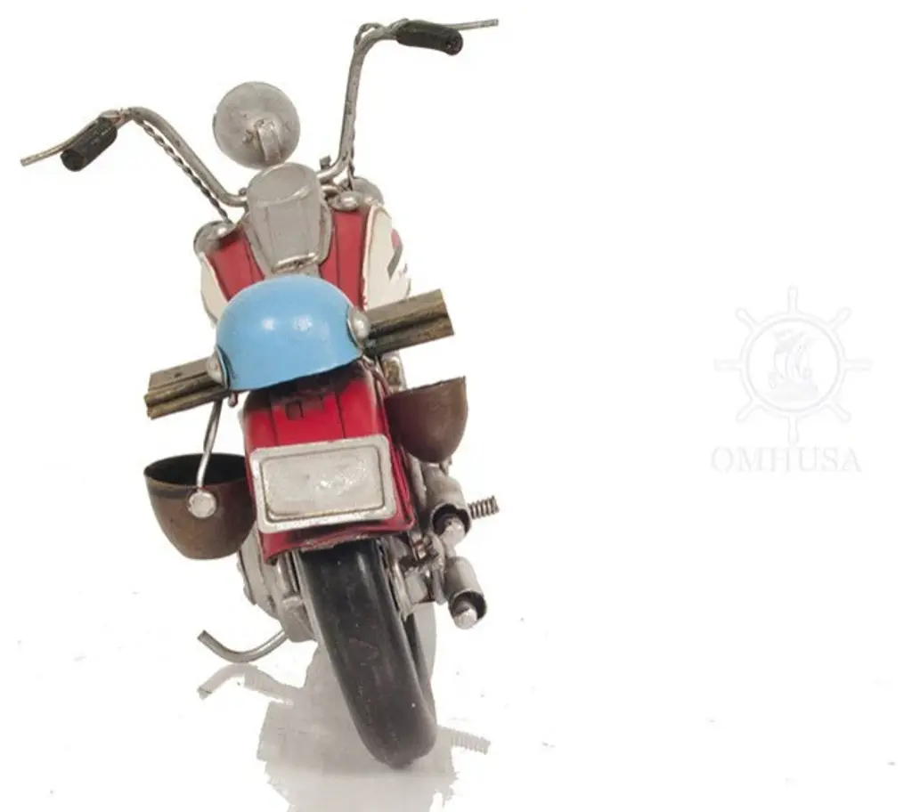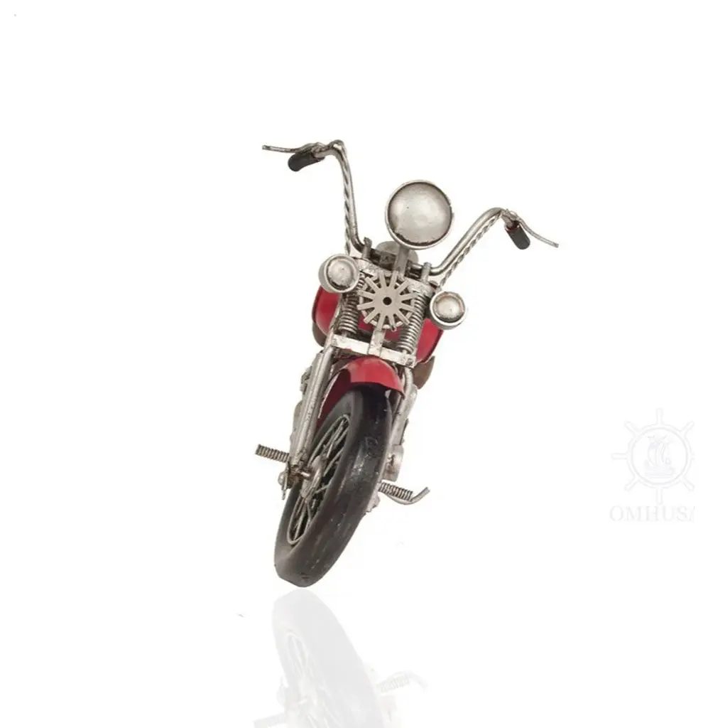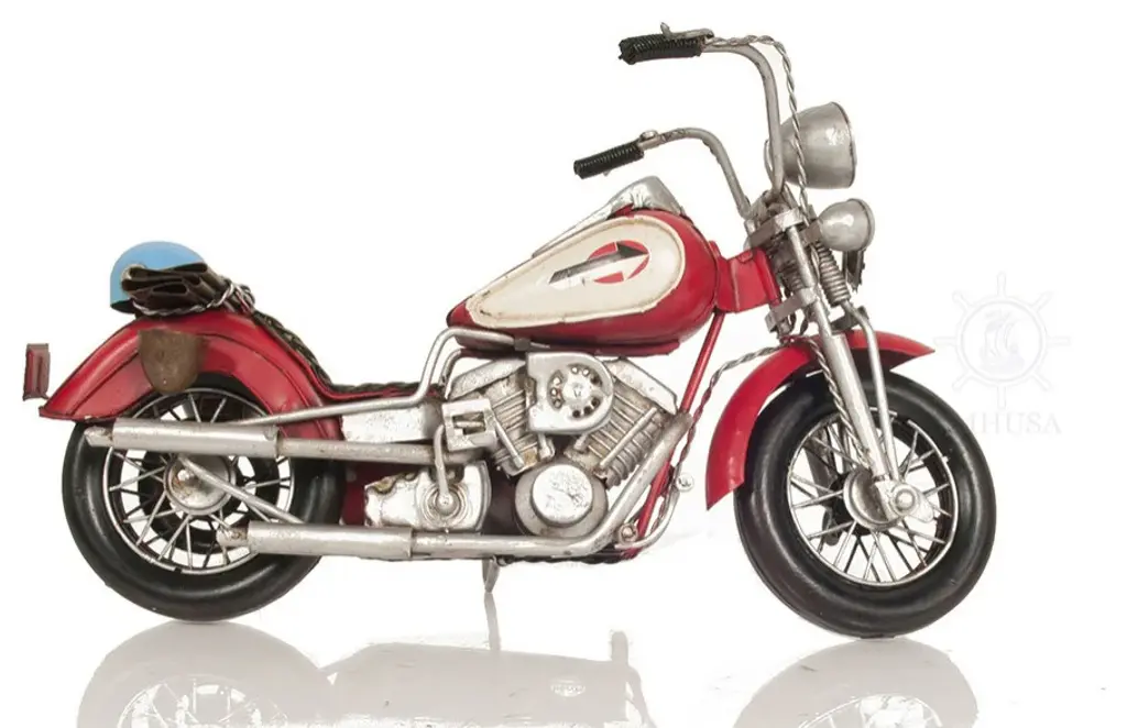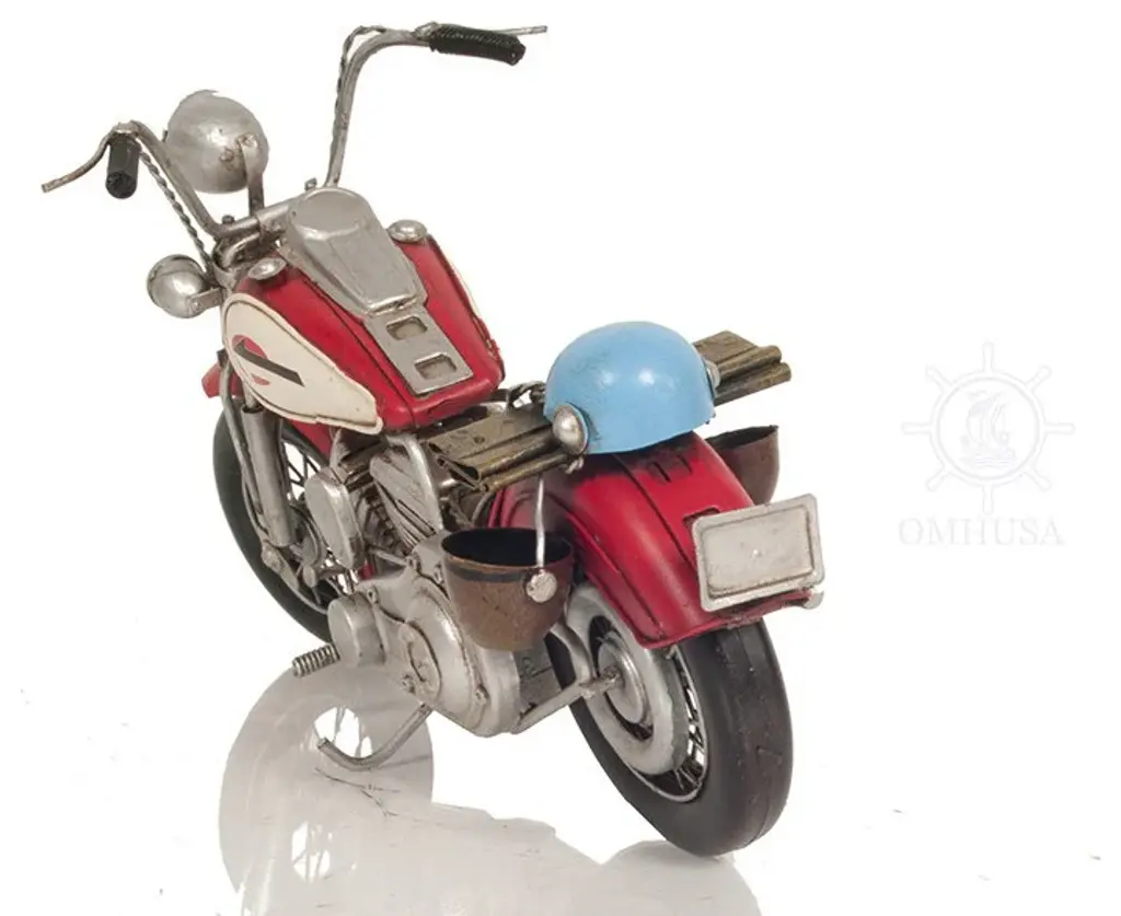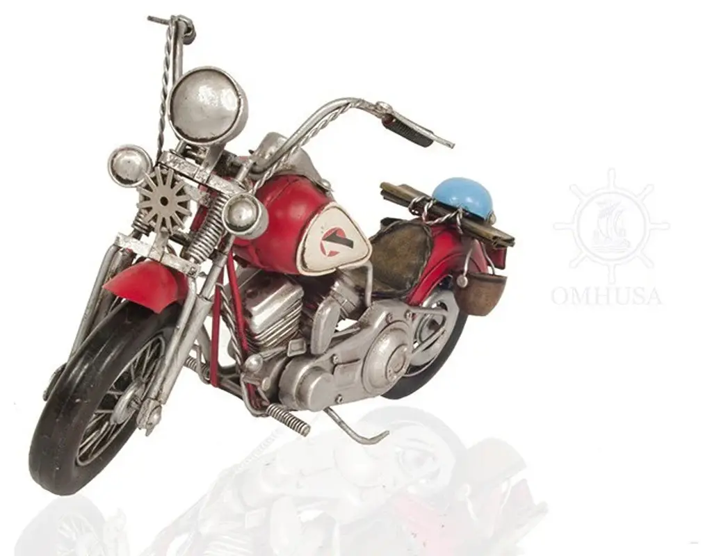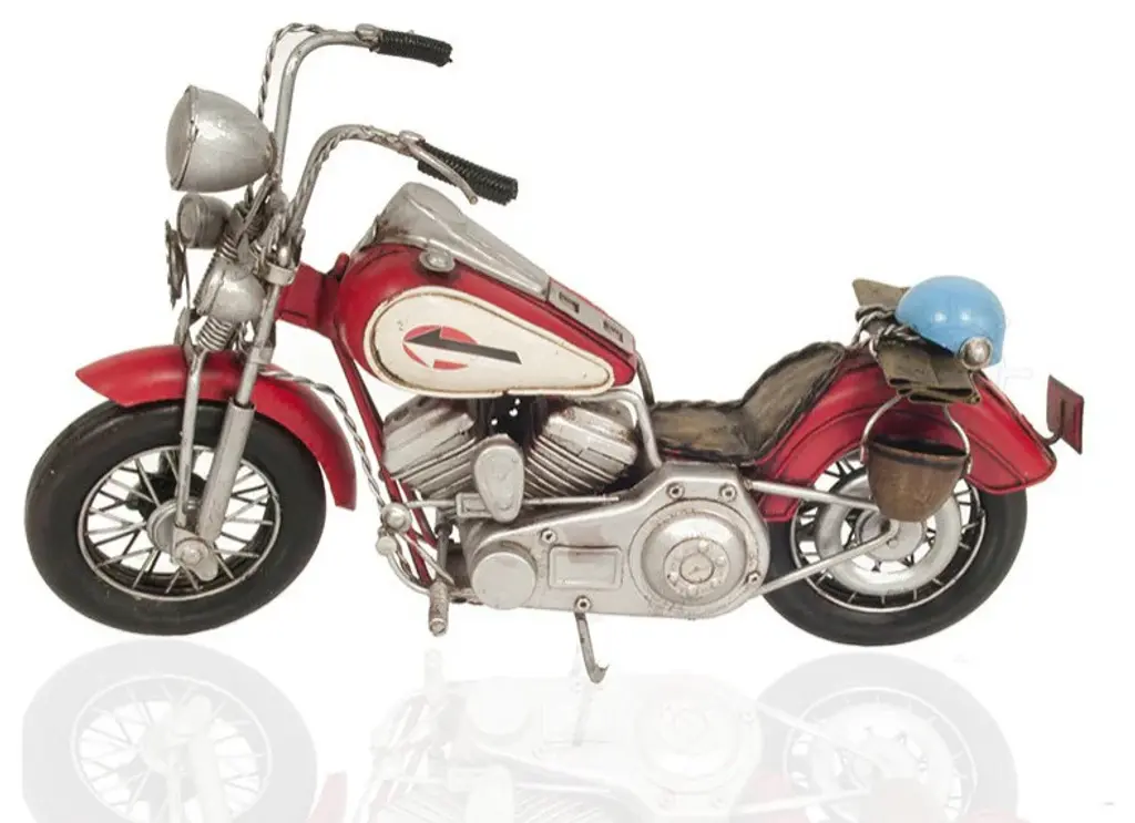 A beautiful replica of the iconic Harley, the Red Harley Davidson Motorcycle Sculpture is handmade out of metal and accurately detailed. This replica features all the original details like handles, a seat, headlight, and the famous V-twin engine. It is a sought-after piece for collectors and Harley enthusiasts. 8" x 13" x 6"