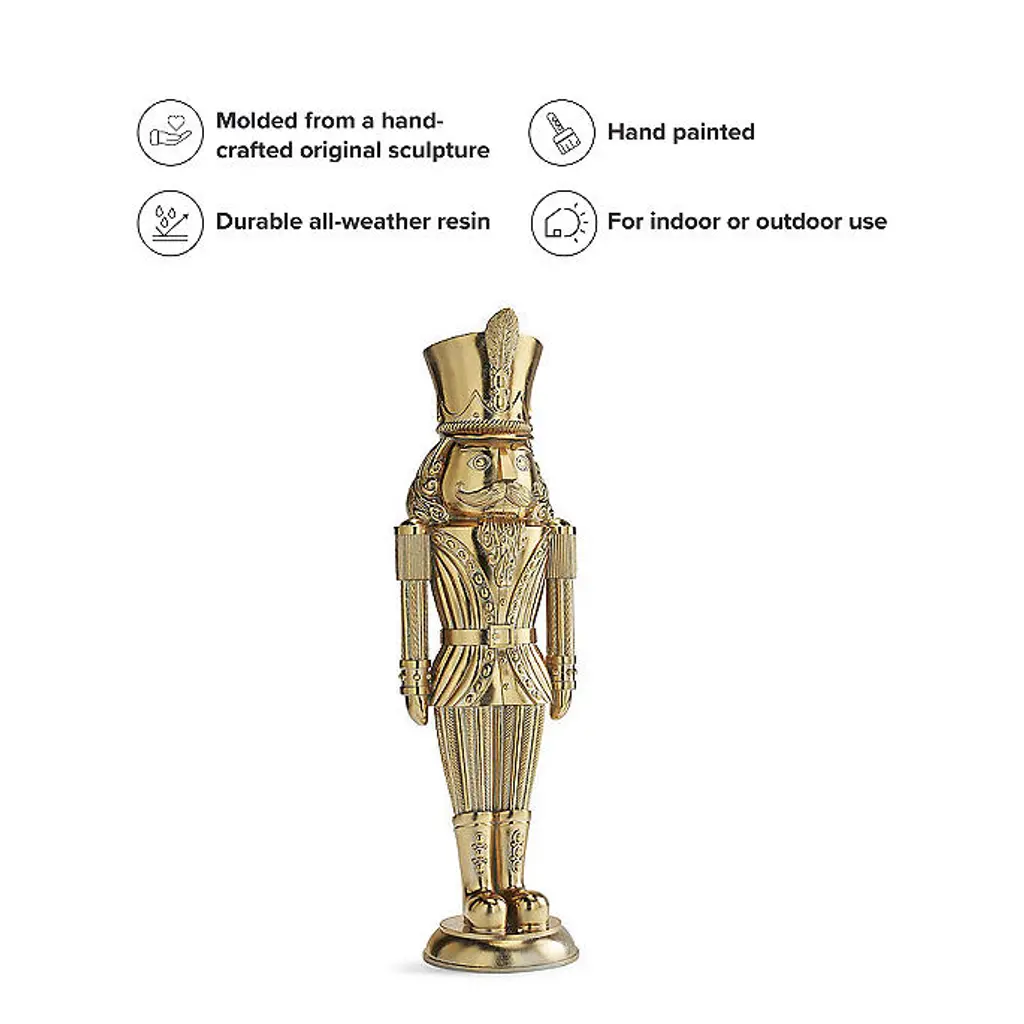 This classic nutcracker stands ready at full attention to bring visual interest and some festive magic to your home this winter. Believed to bring well-being and good fortune, this soldier is meticulously detailed, from his laced boots up to his feathered cap. It is molded from a hand-crafted original sculpture made by highly skilled artisans and painted by hand, giving each piece a unique finish. Polyresin and stone powder figure Handpainted Wipe clean with a soft, dry cloth Indoor or outdoor use Imported A Frontgate exclusive. At Frontgate, our primary focus is quality. We guarantee that every product we sell will stand up to the supreme test – our customers' satisfaction. To learn more about our policies, visit our Shipping & Processing, Returns & Exchanges and Warranty & Price Guarantee pages.