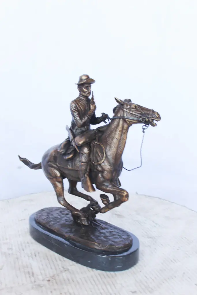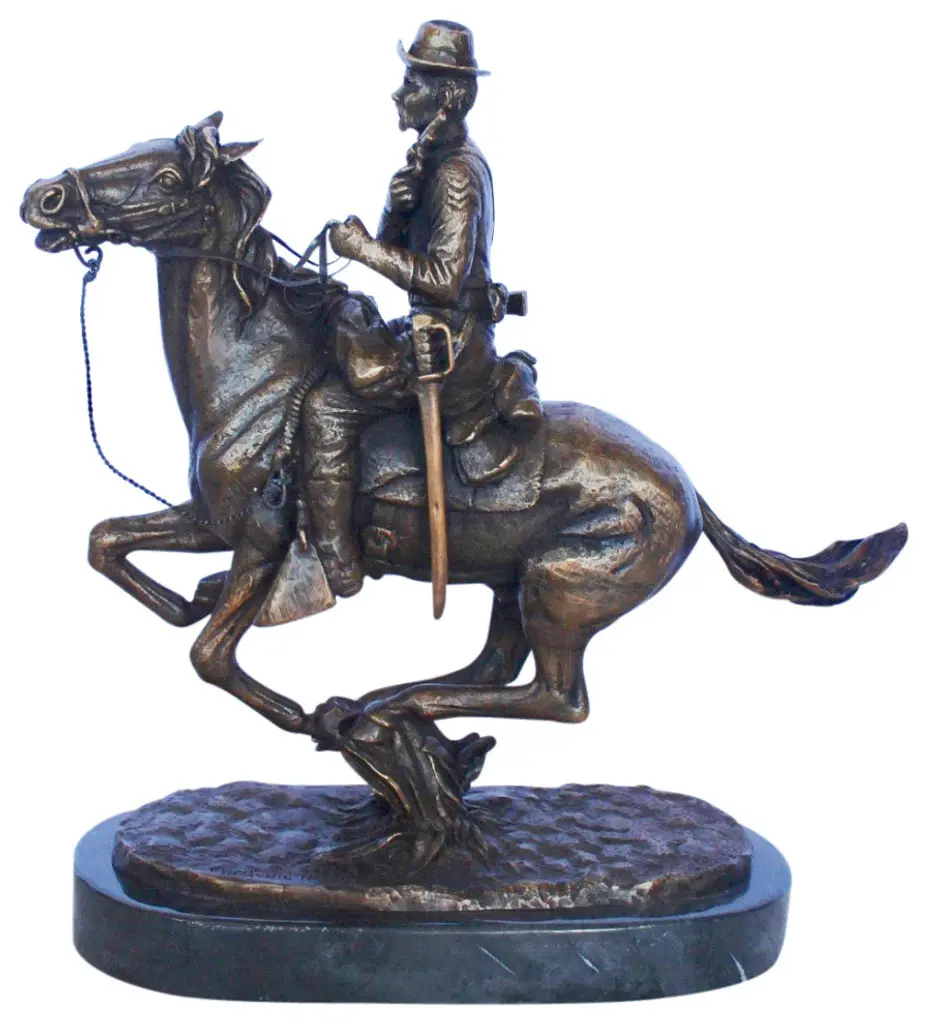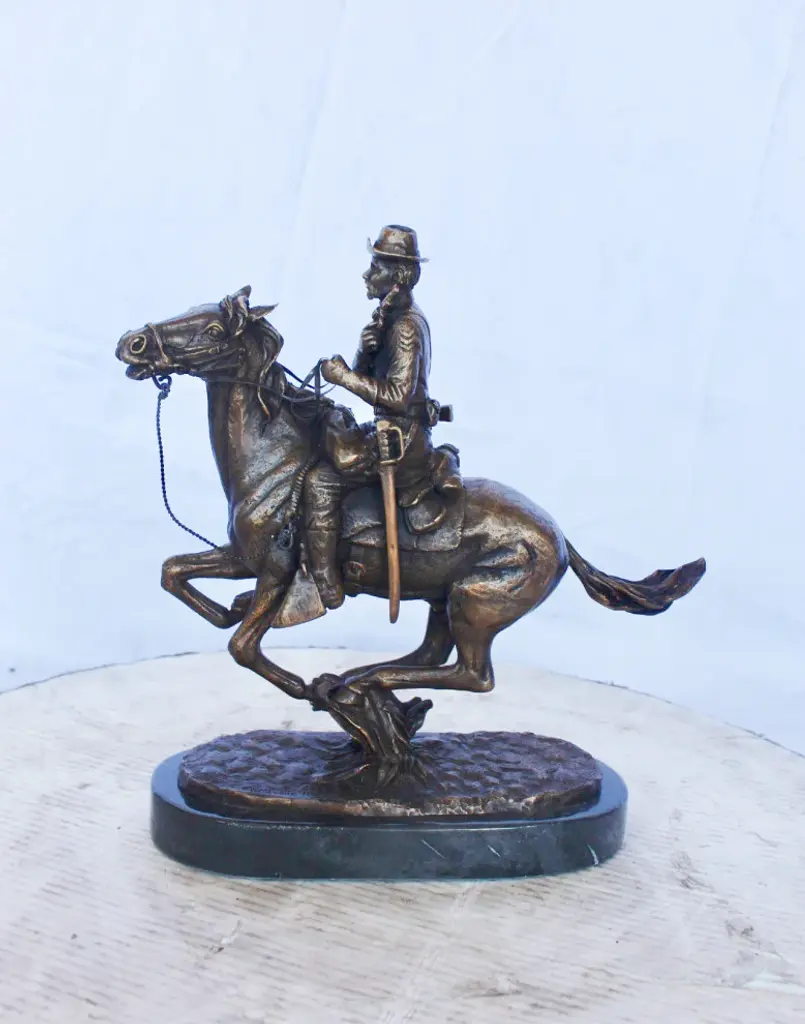 Remington Replica Trooper Of The Plains Bronze Statue - Size: 12" X 5" X 13"h