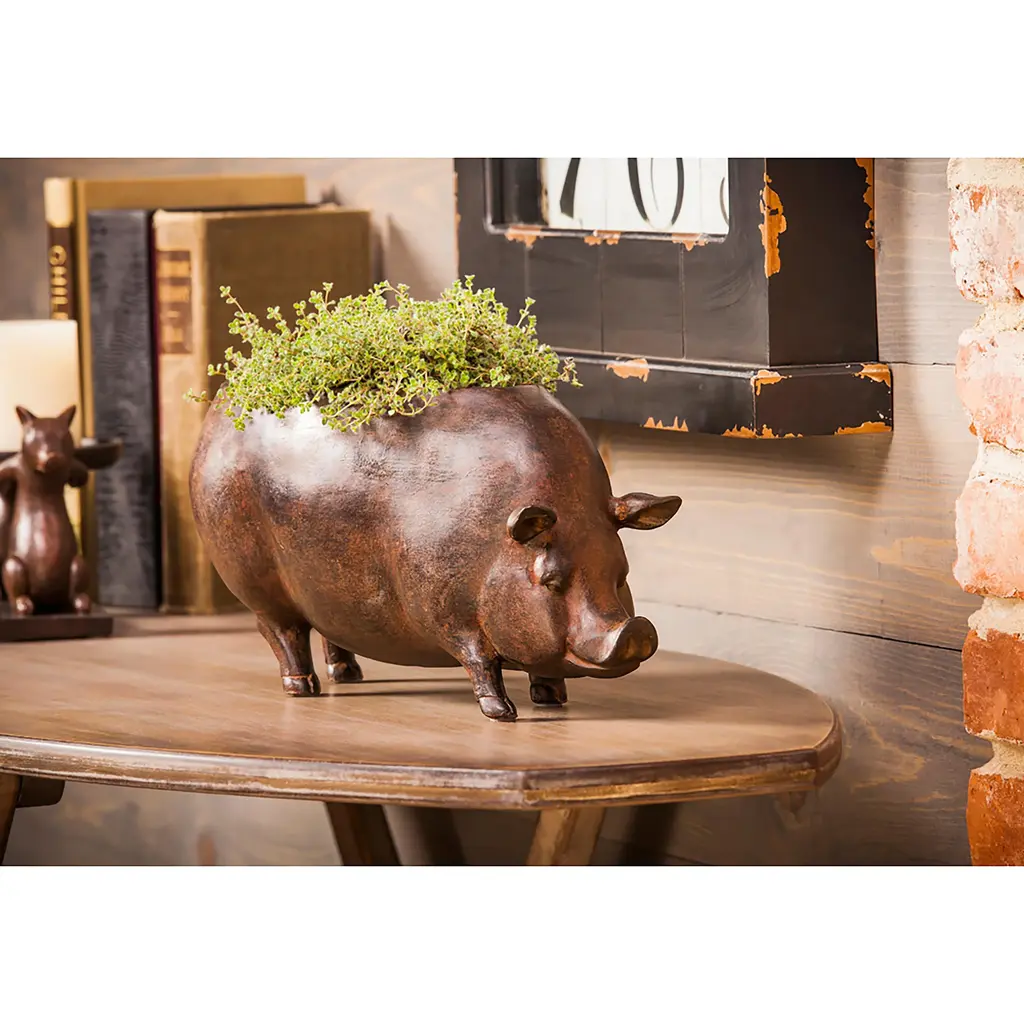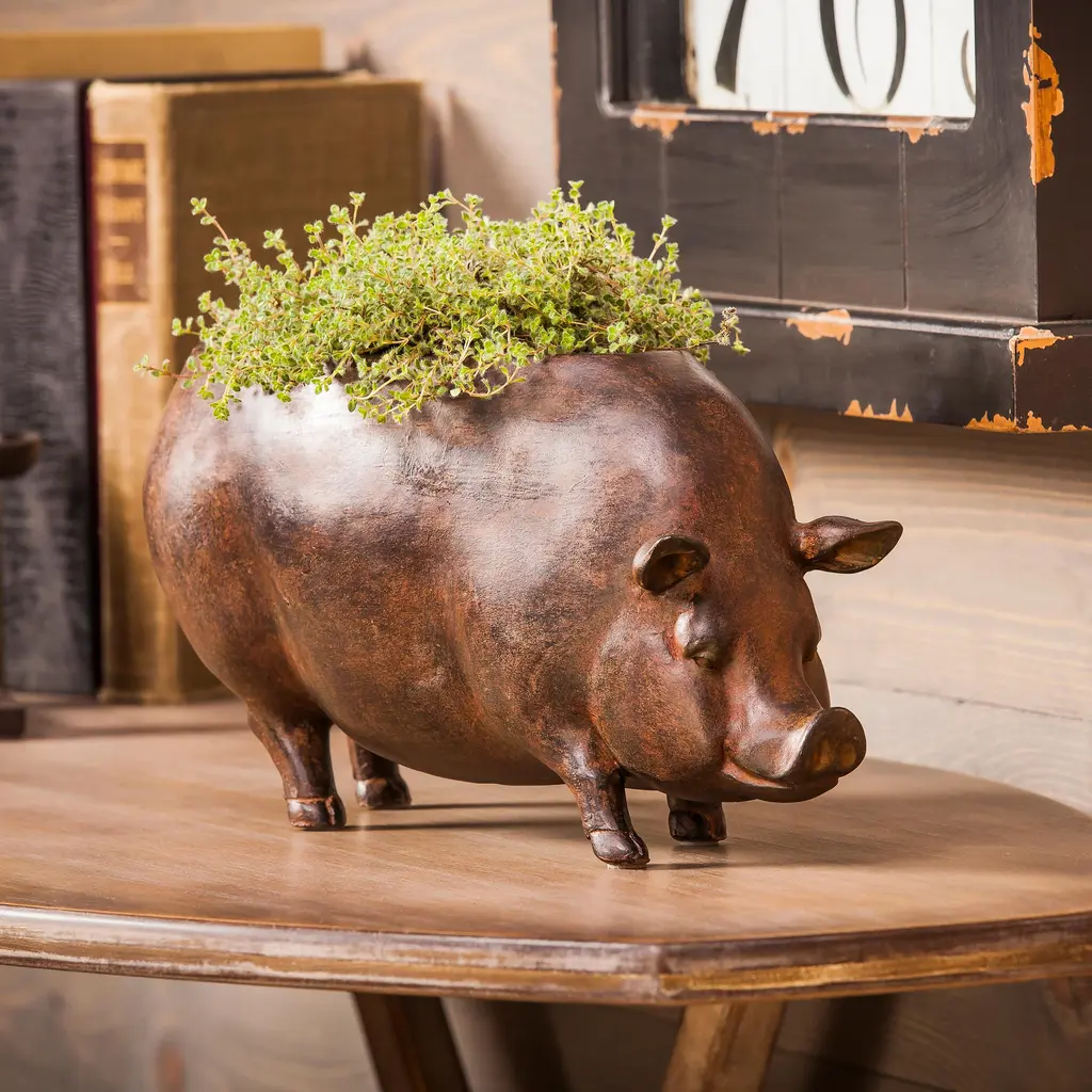 Let your personality shine with this home decor piece. Sculpted from resin, the painted details on this sculpture bring this pig to life. Perfect for your kitchen, or anywhere in your home, this sculpture is suitable for indoor use only.