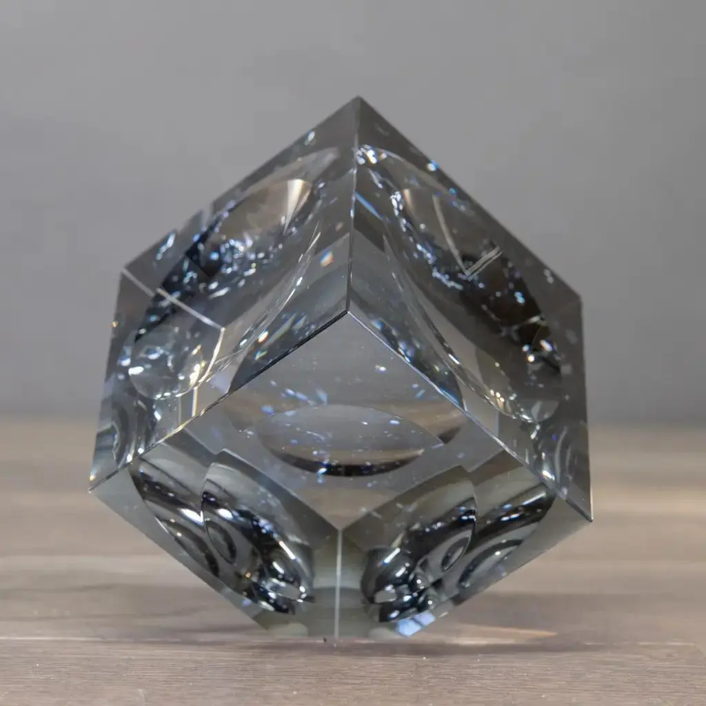 Retro Design Object, Polished Glass Geometric Cube Inspired By The 1970s