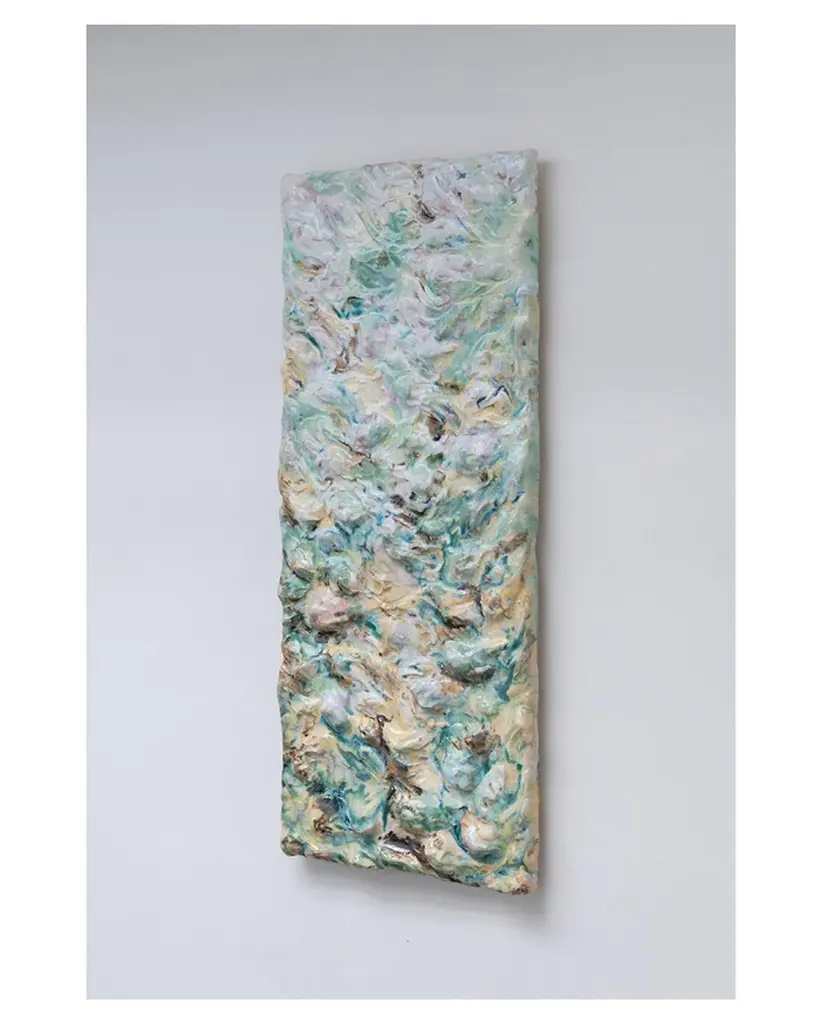 Revelate wall sculpture by Natasja Alers, 2021Dimensions: 40 x 95 cmMaterial: ceramics, glazesVisual artist Natasja Alers (The Hague, 1987) graduated from the Gerrit Rietveld Academy in the field of ceramics. Alers makes casts of human body parts and constructs them into new sculptures, vases, reliefs, seating objects and installations. Her work has previously been on display at Collectible Art Fair, Art Zuid, PAN Amsterdam, Big Art, Rademakers Gallery and foreign exhibitions in cities such as Berlin, Brussels, Antwerp and Copenhagen.Alers plays with the viewer’s expectations. her work attracts visually, drawing you nearer, but it also gets under your skin. It is an exploration of contradictory moods of sensuality and unsettling feelings, a quest for the raw and ambiguous spaces in both body and psyche. By pushing and stretching the sculptured body from within, it raises tension and vulnerability in the material. The visceral glazes and the specific combination of colors refer to redefining the skin of the sculpture.