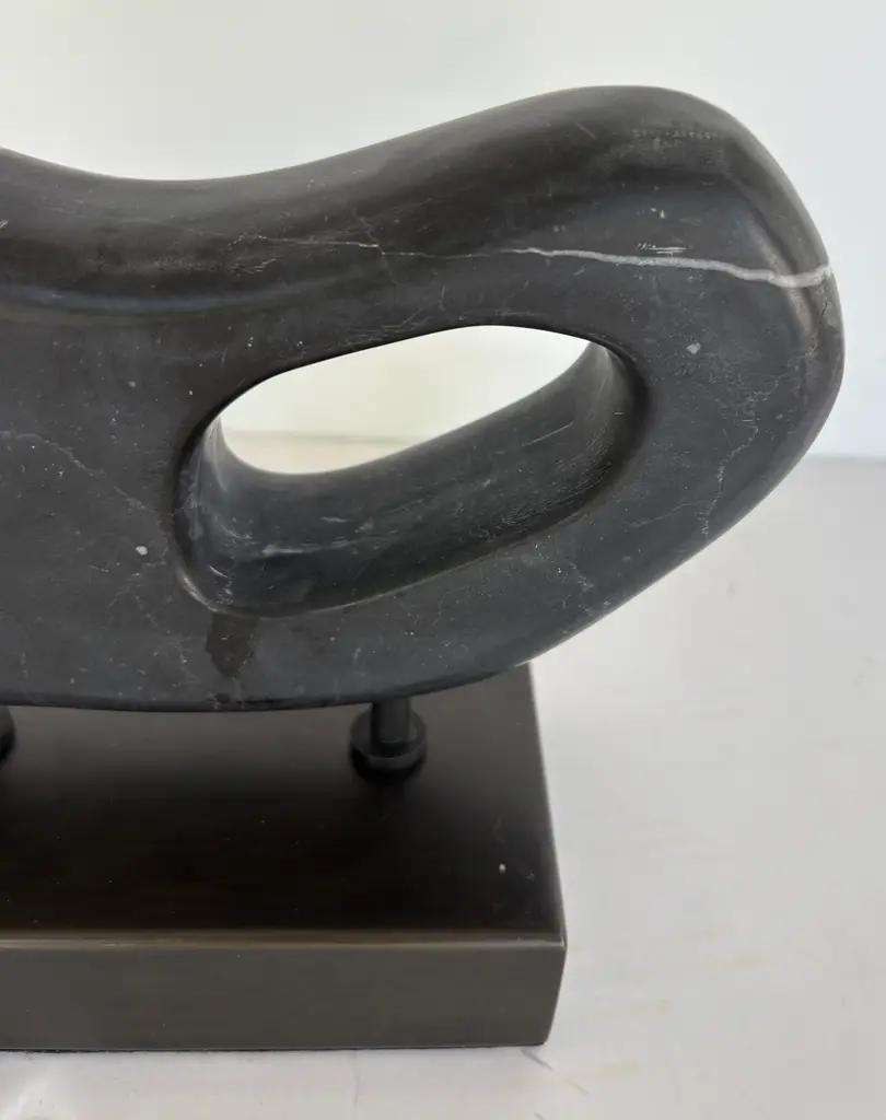Stylish Revelation Modern Black Marble Single Vision Sculpture, bronzed steel base, color and pattern of each piece may vary as this is a natural material, showroom floor sample
