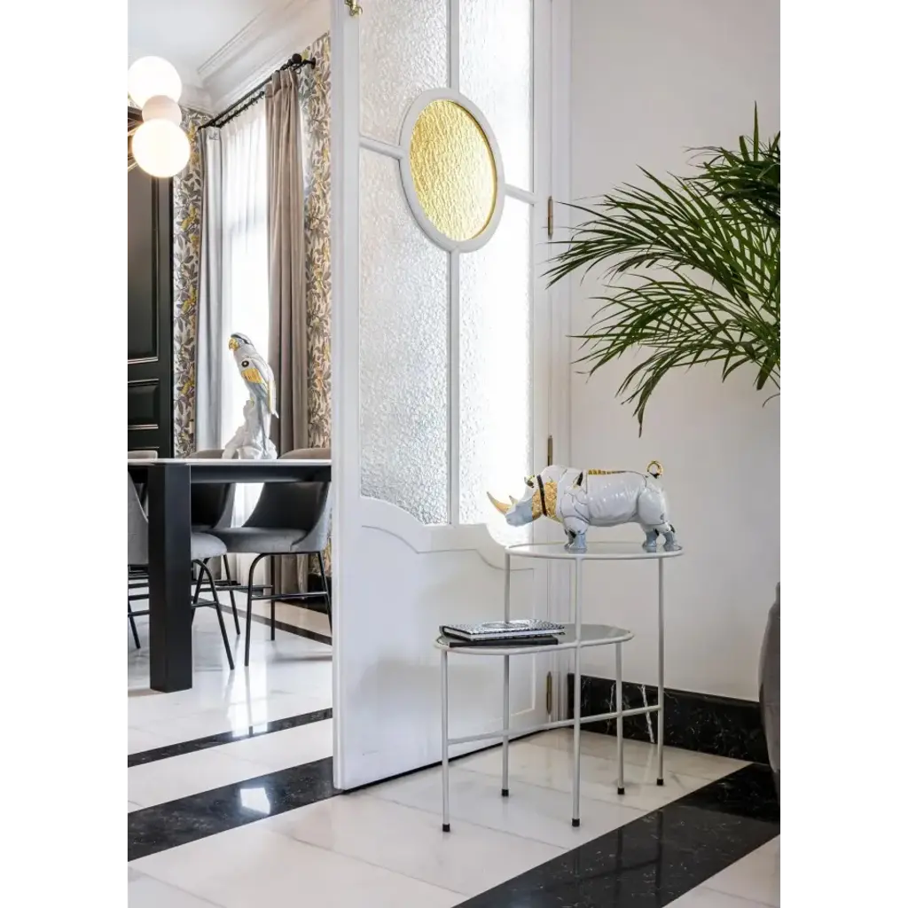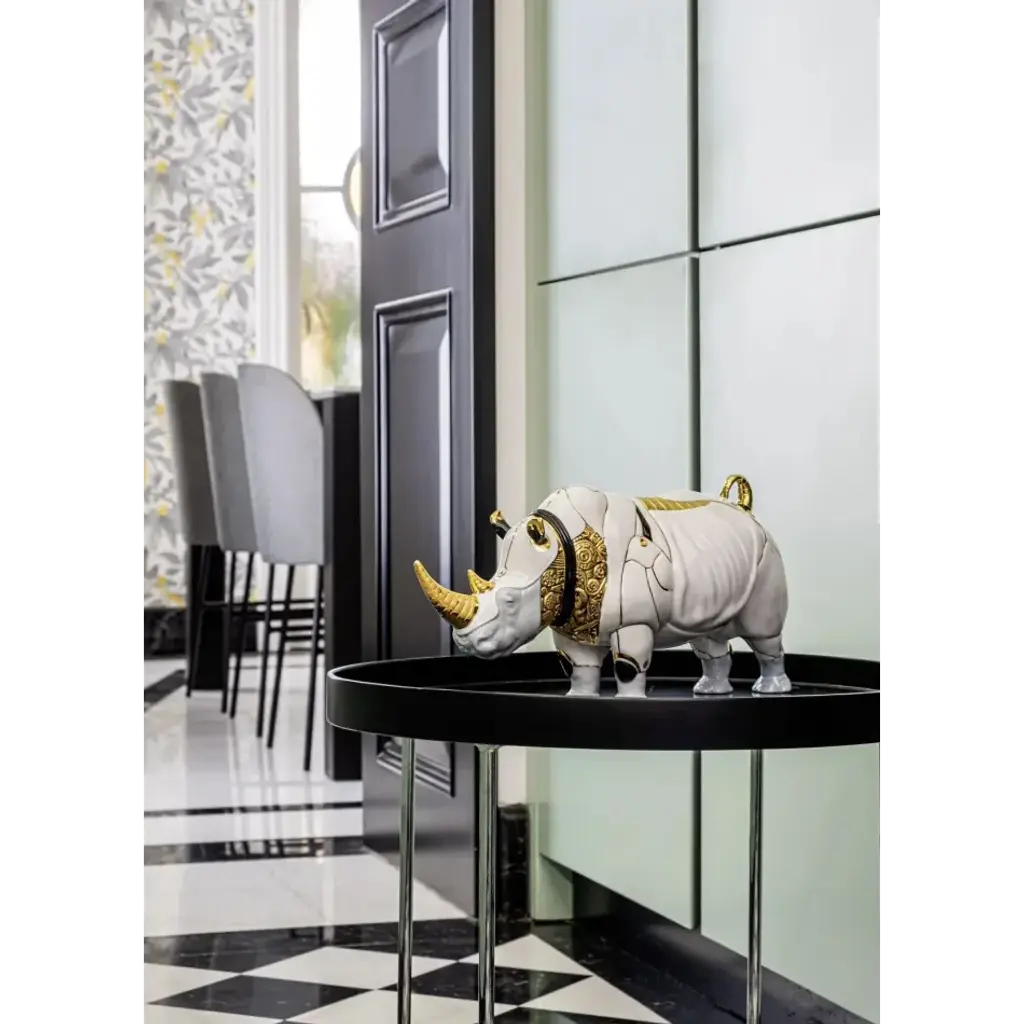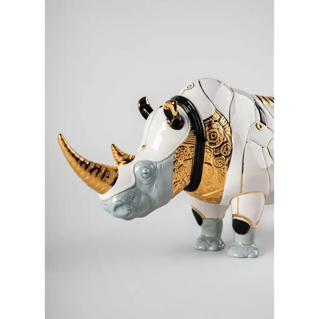 In a world increasingly more accustomed to incredible scientific advances, art continues to come up with new and unexpected realities, like this Cyborg Rhinoceros. Half-animal half-machine, the cyborg is a product of the imagination, of the idea of a world in which living beings and robots complement each other. The forms of the striking rhinoceros, perfectly modeled in glazed white porcelain, take on a new meaning thanks to the decoration and ornamental work. Details in golden luster, black and bluish-grey enhance the figure, creating a very strong contrast. On the other hand, the geometric lines that define the structure of the rhinoceros are heightened by the detailed ornamentation work in relief which enriches the parts decorated in golden luster and manages to capture a robotic metallic effect. This creation stands out not only for its futurist subject matter but also for the precision and quality of the execution in porcelain. Every detail has been carefully elaborated to ensure a work that combines the majesty of the animal kingdom with technological advances. A creation in which nature and science fiction go hand in hand. With pieces like this, the Cyborg Collection offers ideas conceived for interiors off the beaten track that are looking for different visions and decorations. Porcelain reinvents itself, offering a unique combination of tradition and modernism, nature and technology. An iconic Spanish brand, Lladro is a world leader in the creation of porcelain art. Started by brothers Juan, Jose and Vicente Lladro in 1953, the ceramic figurines were initially inspired by the works of great European manufacturers like Meissen and Sevres. Over time, a unique style was forged, consisting of elongated lines, a revolutionary single-firing method, and soft pastel tones.
