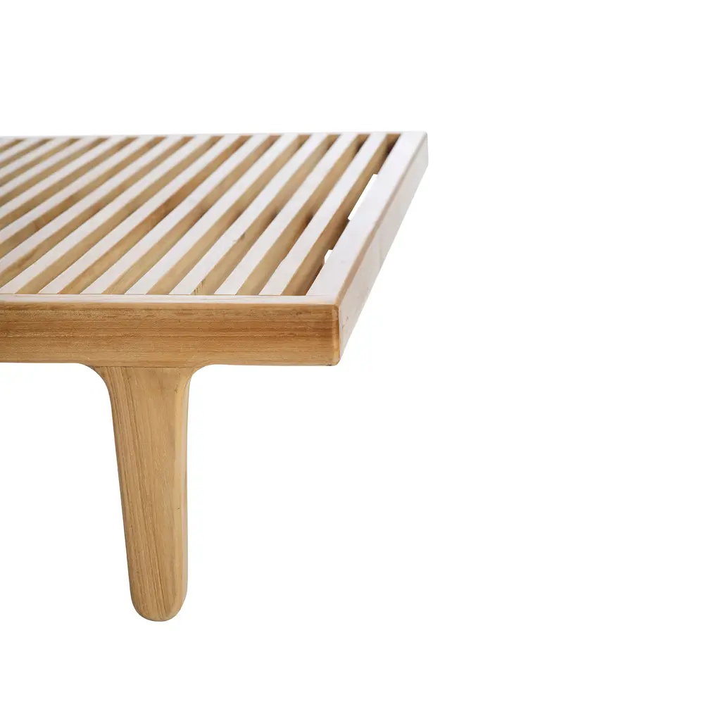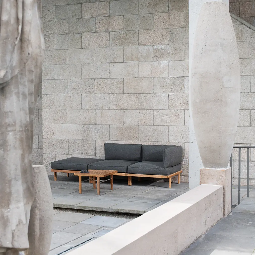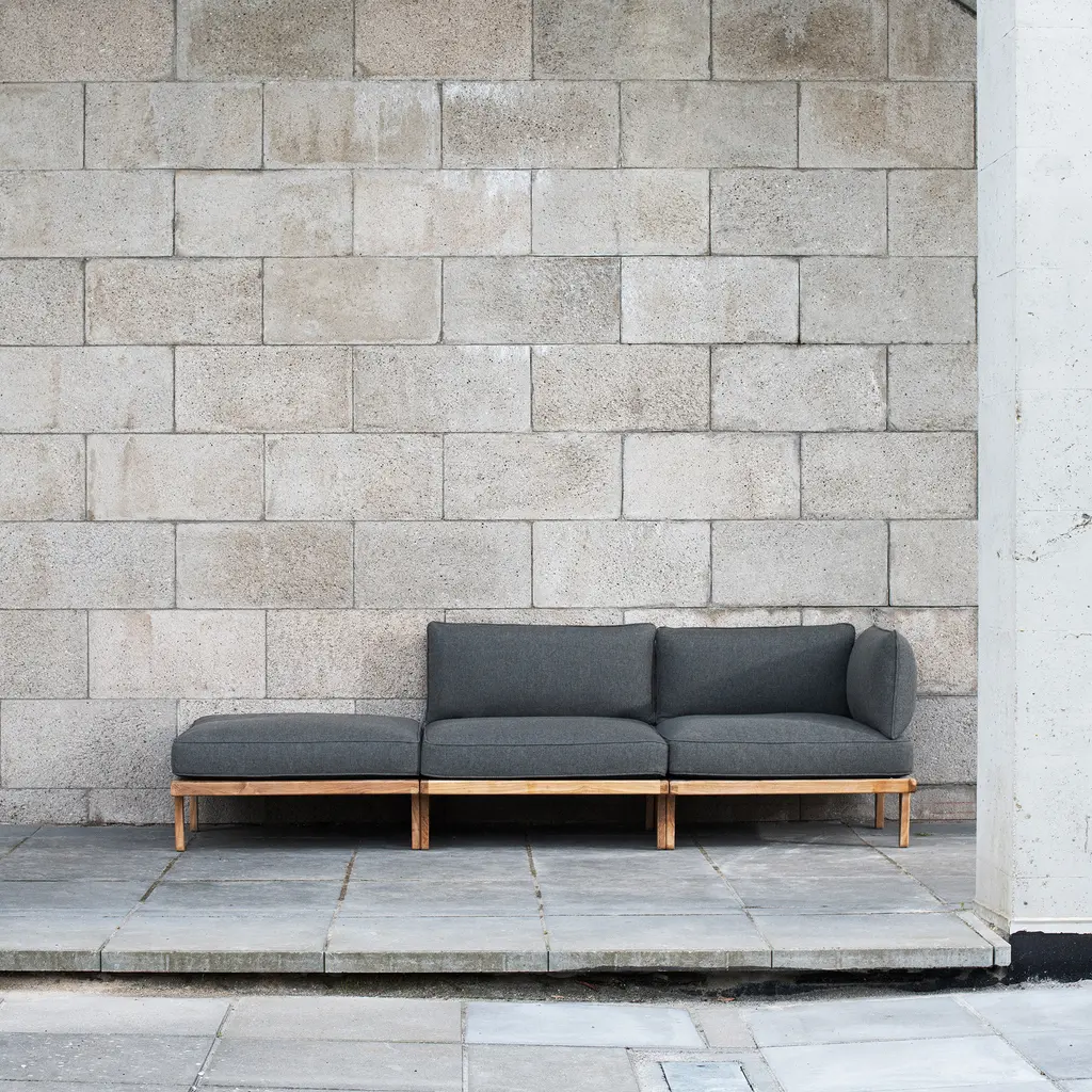 The RIB Modular Sofa by Sibast Furniture offers flexible seating solutions for any outdoor space with its central module design. This versatile component, crafted from the collection’s signature high-quality teak, serves as the foundational building block for larger seating arrangements or can stand alone as a streamlined, contemporary piece. The robust frame and quick-drying QDF™ foam cushions ensure functionality and resilience, ideal for outdoor use. The foam includes a water-repellent and breathable membrane, complemented by UV-resistant and water-repellent fabric, enhancing the module’s durability against the elements. The sleek stainless steel frame, concealed beneath the cushions, adds a modern touch, while velcro straps facilitate easy configuration with other modular pieces. This central sofa module adapts to various outdoor decor styles with its simple lines and understated elegance, offering a balance of comfort and aesthetic flexibility.