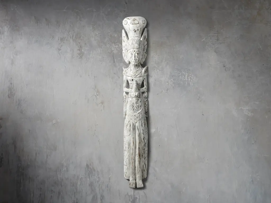 More than simple sustenance, rice is central to Balinese culture. During every phase of the growing season, ceremonies are held to present offerings to Dewi Sri, the goddess of rice, to ensure a healthy and robust harvest. This replica of an authentic antique statue is handcrafted from solid albasia wood and hand-painted to impart the spirit of prosperity to your home.