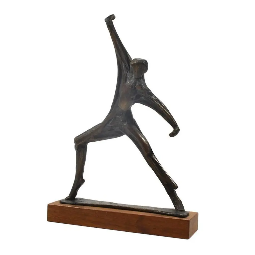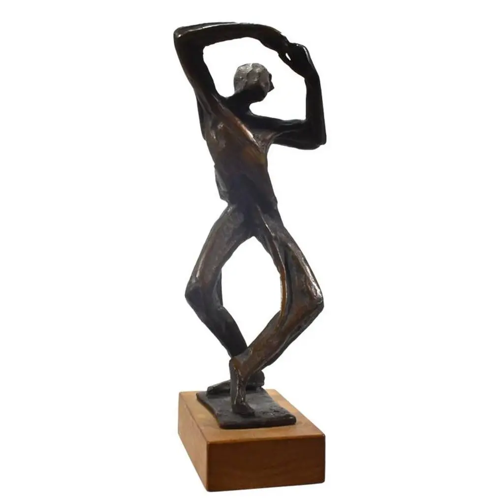 Robert Cook b. 1921 is known for his dynamic sculptures which have a strong gestural quality and convey the fluid motion of dancers and athletes. We are pleased to be offer a collection of four bronze sculptures which are available either individually or as a set. They are each signed and mounted to wooden bases. The measurements are as follows:Fig 1Base 2.5 x 3Height 11Overall depth 5”Fig 2Base approx 4.5 x 3.5Height 8.5Overall depth 5Fig 3Base 2.25 x 3.75Height: 8.5Overall depth 3.5Fig 4Base 2 x 7 3/8Height 10.5Overall depth 3