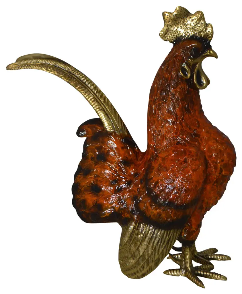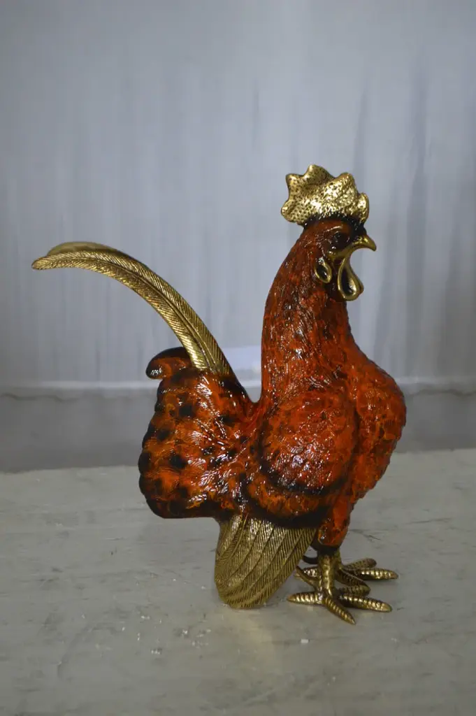 Rooster Cockerel Bronze Statue - Size: 9"l X 4"w X 11"h.