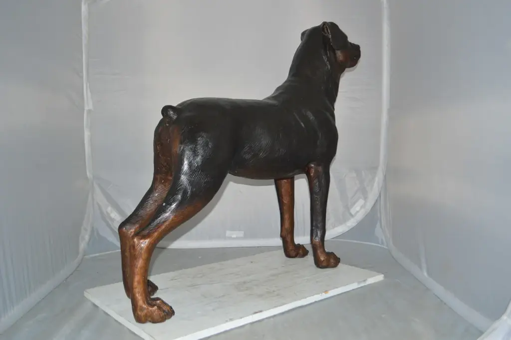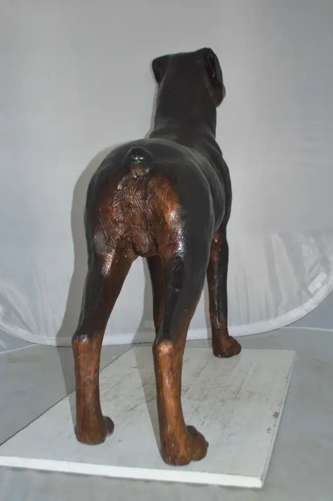 Rottweiler Dog Bronze Statue - Size: 44"l X 10"w X 36"h.