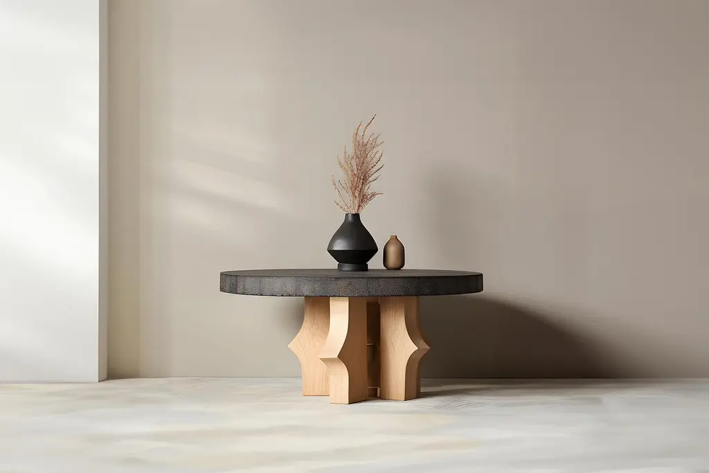 Round Fundamenta Coffee 51 Geometric Wood, Modern Appeal by NONOSculptural coffee table made of solid wood with a natural water-based or black tinted finish. Due to the nature of the production process, each piece may vary in grain, texture, shape or even size.—Fundamenta Collection by NONO: Foundations and FrontiersThe Fundamenta Collection is where the core of design meets the edge of innovation. It's a celebration of fundamental forms that are the building blocks of aesthetic and functional design. Yet, it's also a testament to the restless spirit of creativity that drives NONO. This collection embodies designs that are essential – the classic shapes and essential lines that form the basis of every interior. But in the same breath, it ventures into new territories, experimenting with forms, materials, and concepts.A Canvas for Creative ExplorationIn the Fundamenta Collection by NONO, the basics become a canvas for exploration. Each piece, while grounded in fundamental design principles, is an opportunity to push boundaries. This collection isn't just about creating what's essential; it's about reimagining these essentials. It's where new ideas take shape, where the unexpected becomes the new baseline, and where the everyday is transformed into something extraordinary.Balancing Act: Timeless Yet ContemporaryThe Fundamenta Collection finds harmony in balancing timeless designs with contemporary explorations. This duality offers a unique proposition – furniture that serves as both a cornerstone of design and a statement of modern creativity. The Fundamenta pieces are versatile, able to anchor a space with their simplicity, yet bold enough to stand as focal points of innovation and style.Beauty lies in the basics, and there's always space for growth and innovation.The Fundamenta Collection from NONO redefines versatility in furniture design, offering an extensive range of typologies tailored to sophisticated tastes. This collection features elegantly crafted side tables, sleek and functional coffee tables, spacious and stylish sideboards, comfortable yet chic seating options, and more. Each piece is meticulously made to order, providing a wide array of customization possibilities in dimensions, shapes, scales, and proportions, along with a rich selection of materials and finishes. Catering to the unique needs of each project and client, the Fundamenta Collection ensures that every item, from a statement-making bookshelf to a minimalist dining table, is a one-of-a-kind creation, imbuing every space with unparalleled individuality and style.—NONO is a Mexican design brand with more than 10 years of experience dedicated to the production of interior furnishings, editions, and custom-made projects. At NONO, we create pieces of extraordinary beauty, accommodating the particular needs and tastes of each client with exclusive high-quality designs.————Some details to consider when placing an order with us:• Catalog images are digitally generated. Actual products may slightly vary in texture, grain, and final finish due to natural material differences. Despite these variations, our expertise ensures each piece maintains high quality and matches the intended design.• All of our products are made to order, and the lead time for standard products is estimated to be 9 to 12 weeks, plus shipping time. However, special pieces or sculptures may require a longer lead time.• We offer customization in dimensions and finish for all of our furniture pieces, which may result in additional charges.• We only facilitate freight services by a third party. The client is solely responsible for any associated import/export taxes, as well as any necessary customs paperwork.• We are not responsible for any damages that may occur during shipping or for any customs-related delays.
