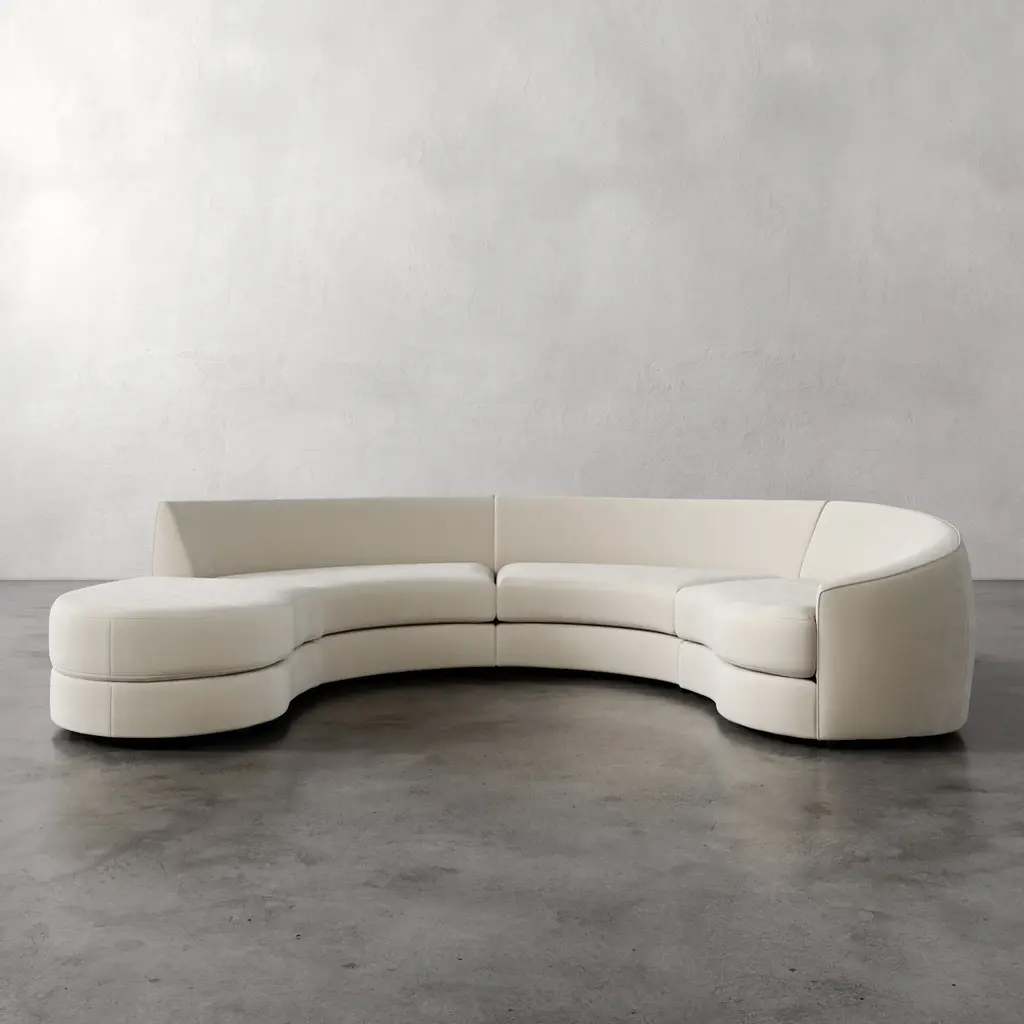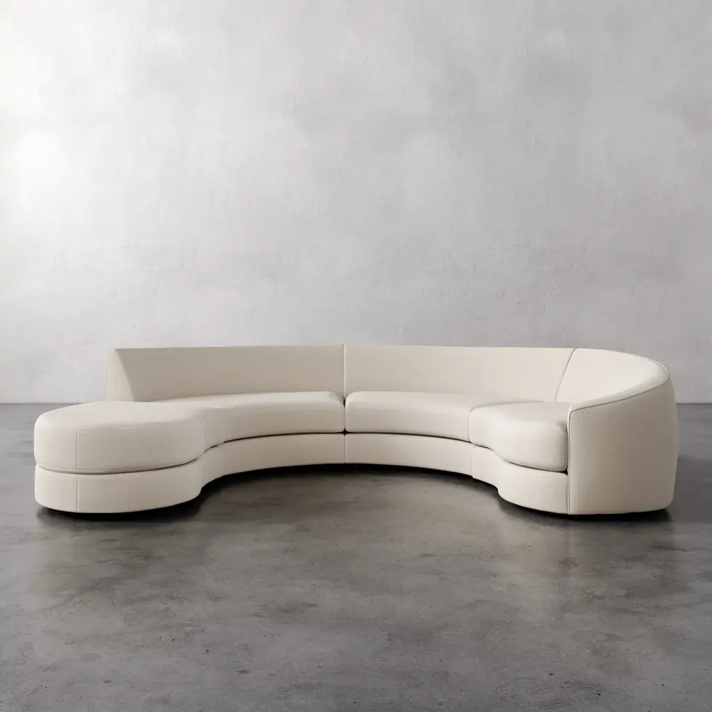 Drawn from the ethos of mid-century organic modernism, the Rulmann Collection embodies the curvilinear genius of Kagan, Royère, and Noguchi. Each module is sculpted, low-slung, and materially grounded, inviting personal reconfiguration. Sofa becomes chaise becomes multi-piece conversation sectional. Modularity is not a function, but a philosophy, a living system of sculpture and repose.Handcrafted in North Carolina, Rulmann is available in multiple modular components. Designed for permanence, built for expression.