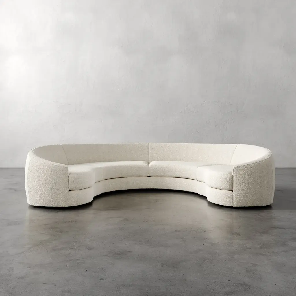 Drawn from the ethos of mid-century organic modernism, the Rulmann Collection embodies the curvilinear genius of Kagan, Royère, and Noguchi. Each module is sculpted, low-slung, and materially grounded, inviting personal reconfiguration. Sofa becomes chaise becomes multi-piece conversation sectional. Modularity is not a function, but a philosophy, a living system of sculpture and repose.Handcrafted in North Carolina, Rulmann is available in multiple modular components. Designed for permanence, built for expression.