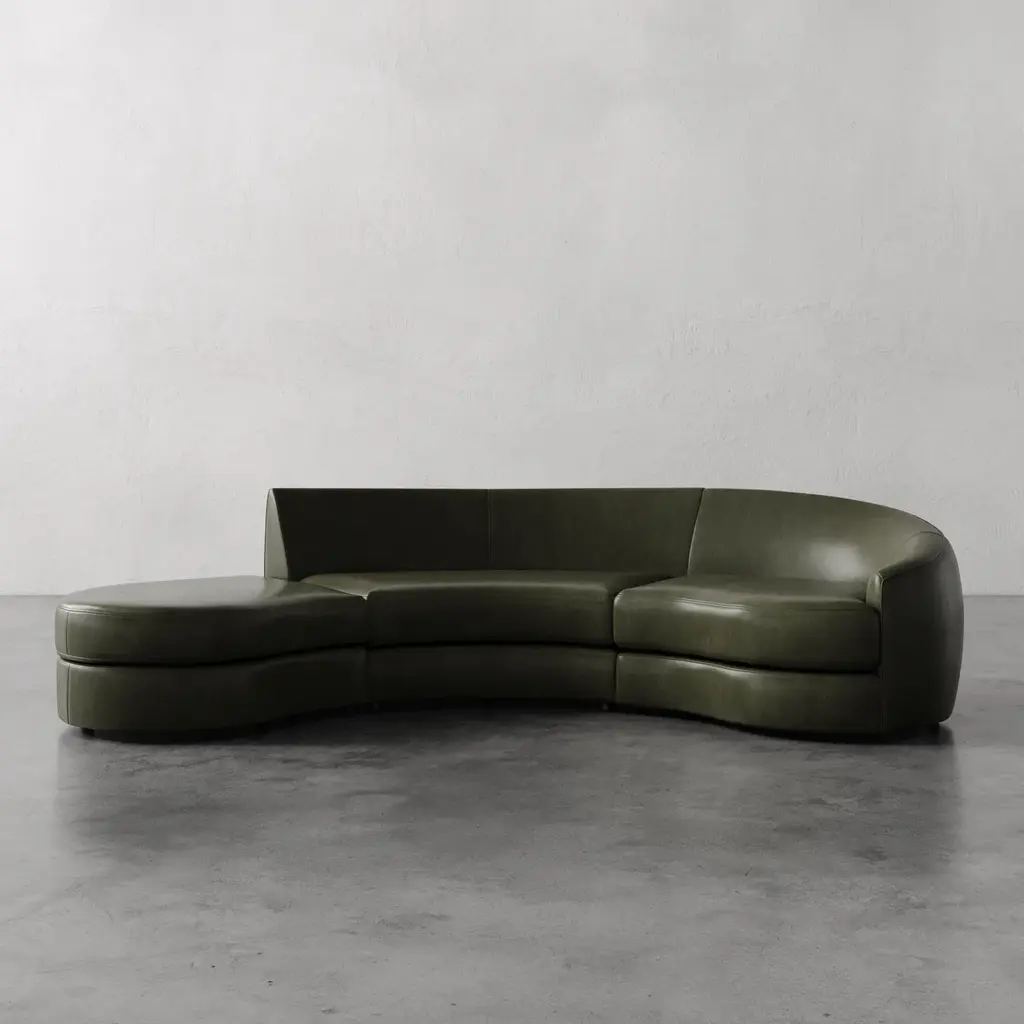 Drawn from the ethos of mid-century organic modernism, the Rulmann Leather Collection embodies the curvilinear genius of Kagan, Royère, and Noguchi. Each module is sculpted, low-slung, and materially grounded, inviting personal reconfiguration. Sofa becomes chaise becomes multi-piece conversation sectional. Modularity is not a function, but a philosophy, a living system of sculpture and repose. Handcrafted in North Carolina, Rulmann is available in multiple modular components. Designed for permanence, built for expression.
