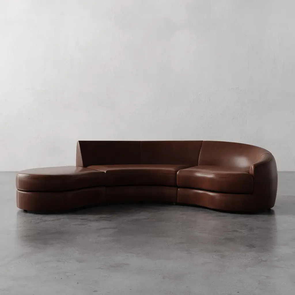 Drawn from the ethos of mid-century organic modernism, the Rulmann Leather Collection embodies the curvilinear genius of Kagan, Royère, and Noguchi. Each module is sculpted, low-slung, and materially grounded, inviting personal reconfiguration. Sofa becomes chaise becomes multi-piece conversation sectional. Modularity is not a function, but a philosophy, a living system of sculpture and repose. Handcrafted in North Carolina, Rulmann is available in multiple modular components. Designed for permanence, built for expression.