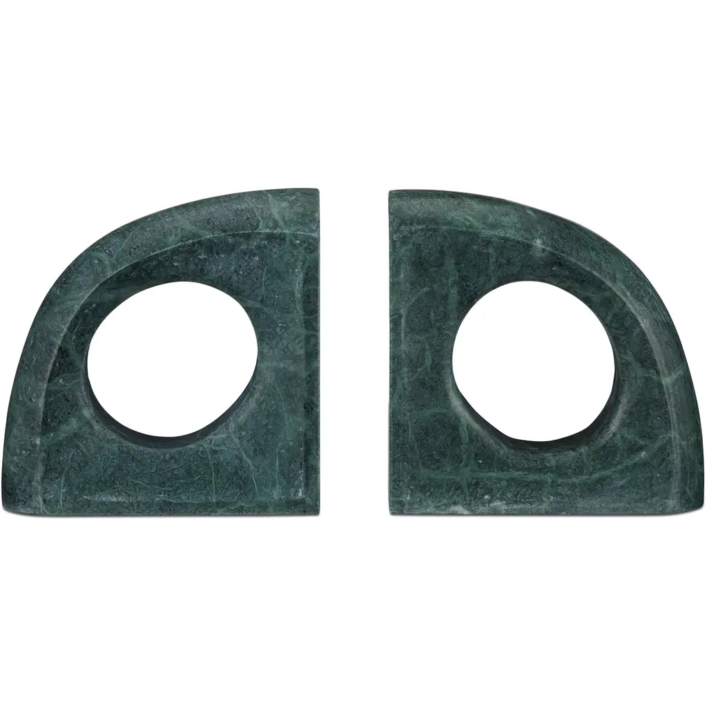 The Russo Green Object Set includes two marble sculptures that are versatile decorative accents they will stand on their own as sculptures or will make excellent bookends. Because the pieces are made of natural marble, the veining of each will be slightly different, making each one unique.