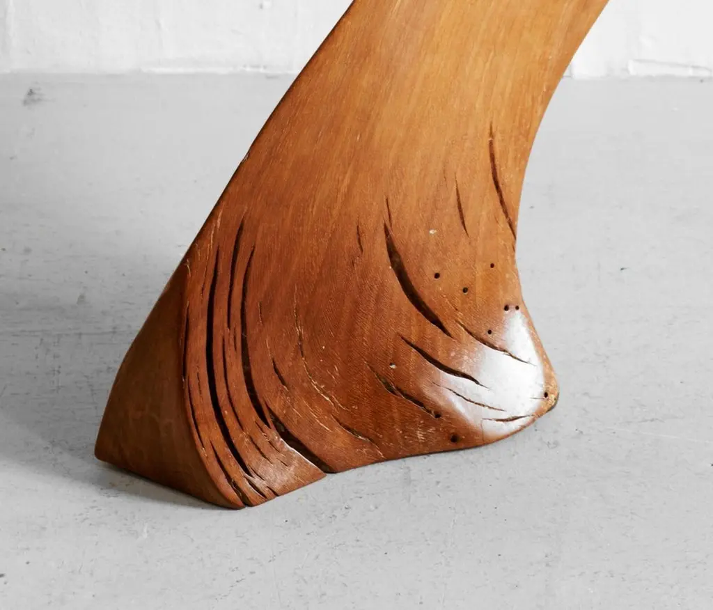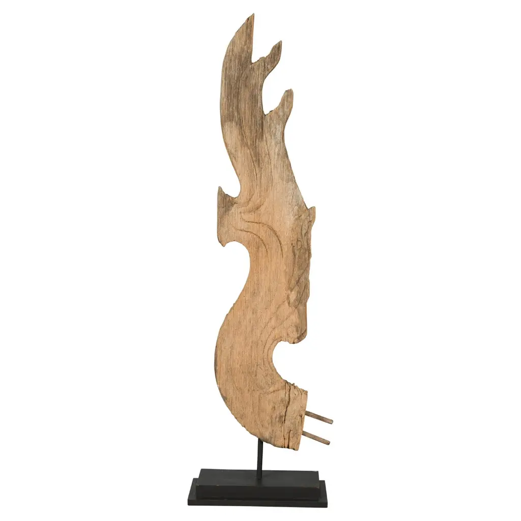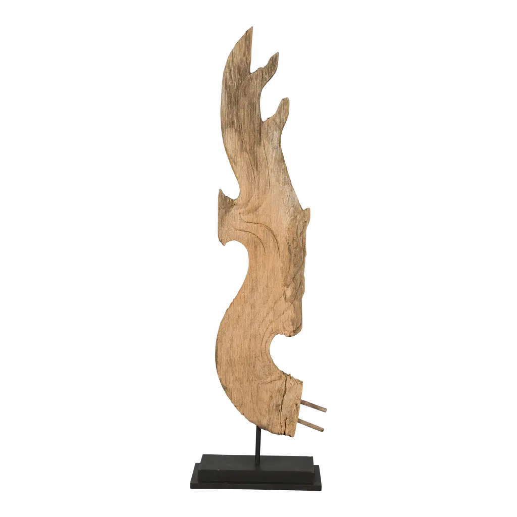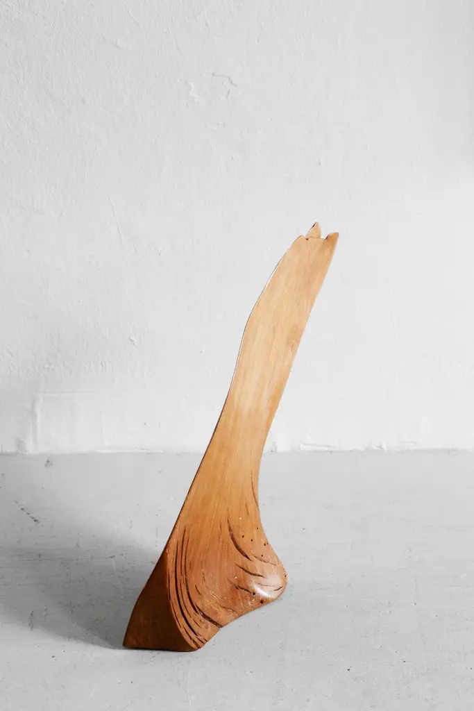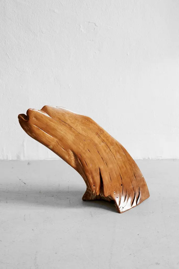 S0118 Decorative Object in Lime Tree Wood by Jörg PietschmannDimensions: D 14 x W 23 x H 43 cm. Materials: Lime tree wood.In Pietschmann’s sculptures, trees that for centuries were part of a landscape and founded in primordial forces tell stories inscribed in the memory of their fibers.The forms Jörg Pietschmann pares from ancient trees are extensive and astonish with their physical presence, a combination of elegance and primeval nature. Pietschmann’s sculptures are monuments to the trees from which they derive.Being endowed with the ruggedness of primeval matter gives them a veritable vitality: figures that appear to have grown into their sculptural form of their own accord. But Pietschmann’s tangibly present bodies have undergone a considerable degree of metamorphosis.In order to generate these unique tree specimens he examines the tree’s morphology and intrinsic inner map until the courses of its grain, of a curve, knots and cracks concur with his projections. The exploratory process is accompanied by constant modification, giving at the start of each new piece no more than an intimation of the figure that will later emerge. In their completion, Pietschmann’s sculptures once more become universal form.Jörg Pietschmann`s workshop is situated on the countryside close to Hamburg. He works with indigenous timber as oak, lime tree, beech, poplar, olive tree and maple felled by the wind or human hand, together with tropical timber found on his travels.