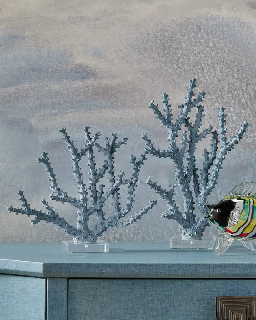 The Coral Set fools the eye into thinking it was retrieved from the bottom of the sea, but these specimens were fashioned in composite and given a finish that looks very real. The coral sculptures sit atop clear acrylic bases to keep the designs light and airy. The nature-inspired accessories would bring the ocean indoors in a seaside residence or any room where colorful accents are desired.