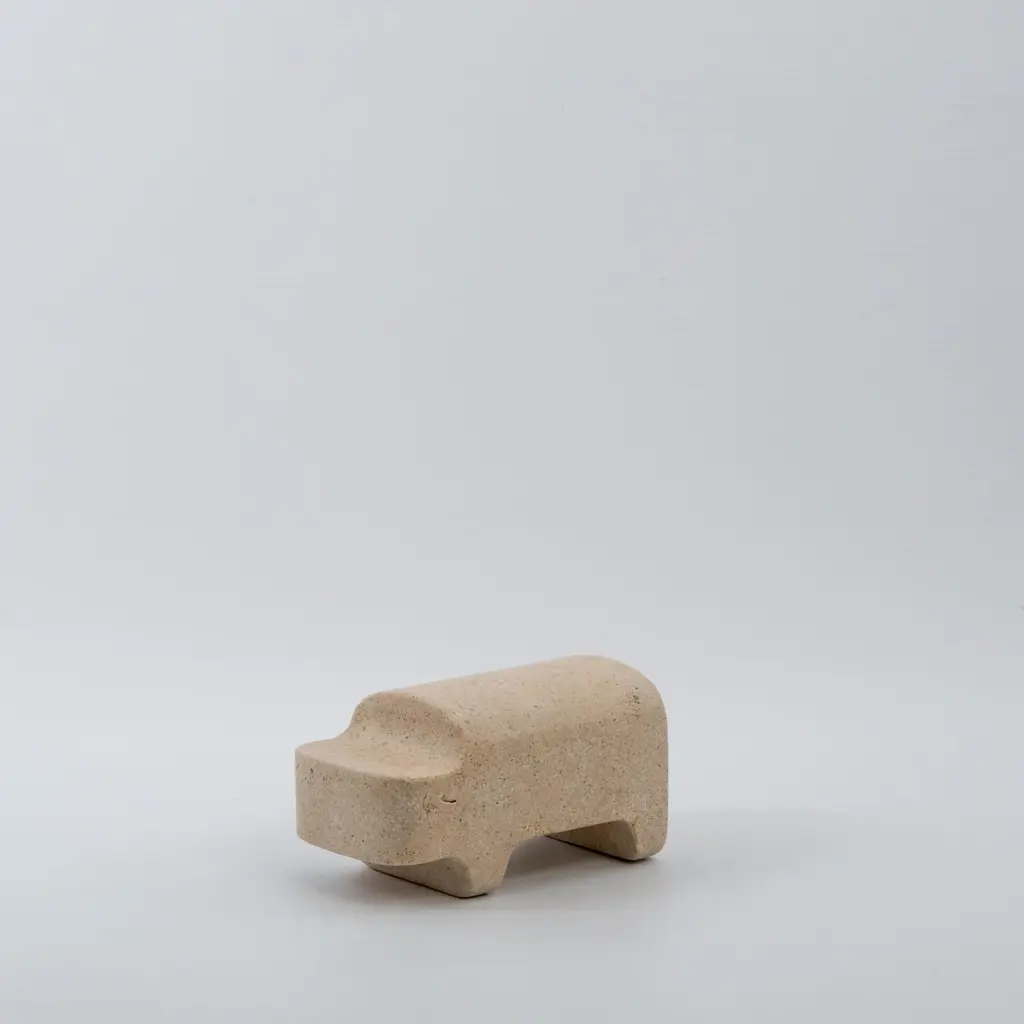 Carved from sand-colored Mazzaro stone, this finely crafted living-room sculpture can be used as a decorative paperweight in an office.